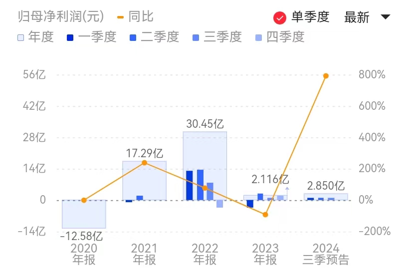 《科创板日报》9日讯,晶合集成发布2024年前三季度业绩预告,预计实现营业收入67亿-68亿元,同比增长33.55%到35.54%;预计实现归属于母公司所有者的净利润2.7亿-3亿元,同比增长744.01%到837.79%。随着行业景气度逐渐回升,公司自今年3月起产能持续处于满载状态,并于今年 6 月起对部分产品代工价格进行调整,助益公司营业收入和产品毛利水平稳步提升。2024年随着CIS国产化替代加速,公司紧跟行业内外业态发展趋势,持续调整、优化产品结构。小财注:Q2净利1.08亿元,据此计算,Q3净利预计8300万元-1.13亿元,环比变动-23%-5%。
