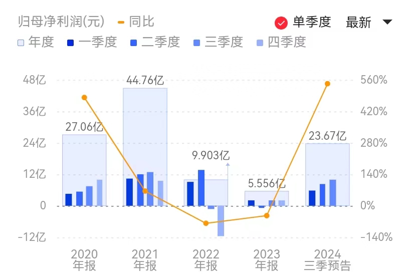财联社10月9日电,韦尔股份公告,公司预计2024年前三季度实现归属于母公司所有者的净利润为22.67亿元到24.67亿元,同比增加515.35%到569.64%。公司表示,市场需求持续复苏,下游客户需求增长,公司在高端智能手机市场的产品导入及汽车市场自动驾驶应用的持续渗透,使得营业收入和毛利率显著增长。小财注:Q2净利8.09亿元,据此计算,Q3净利预计9亿元-11亿元,环比增长11%-36%。