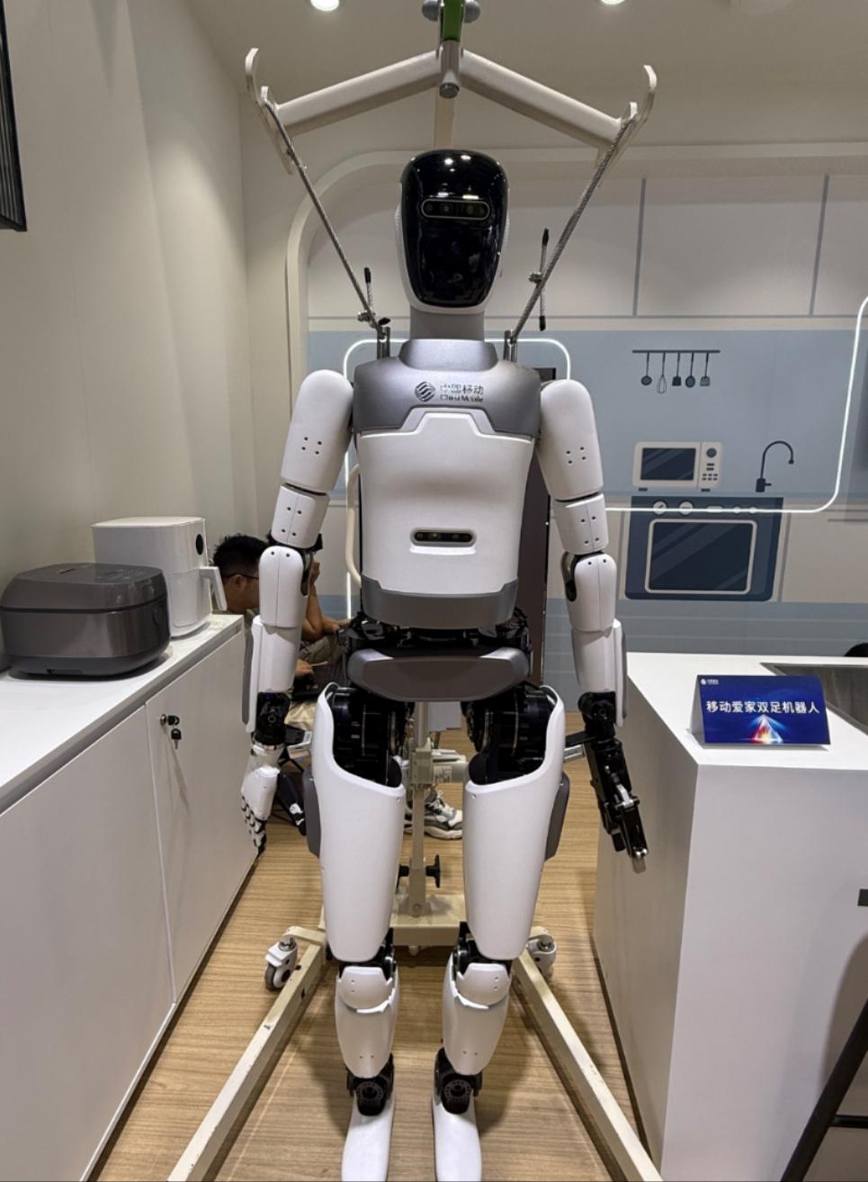 中国移动首次展出自研人形服务机器人:仍处原型机阶段