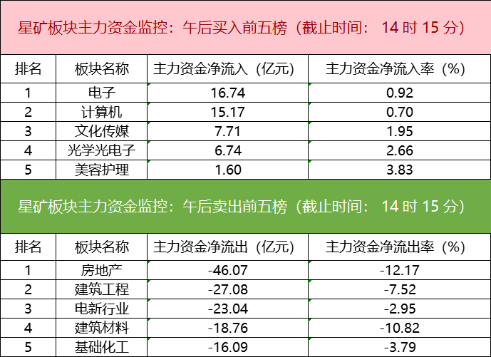 主力资金监控:房地产板块净流出超46亿元