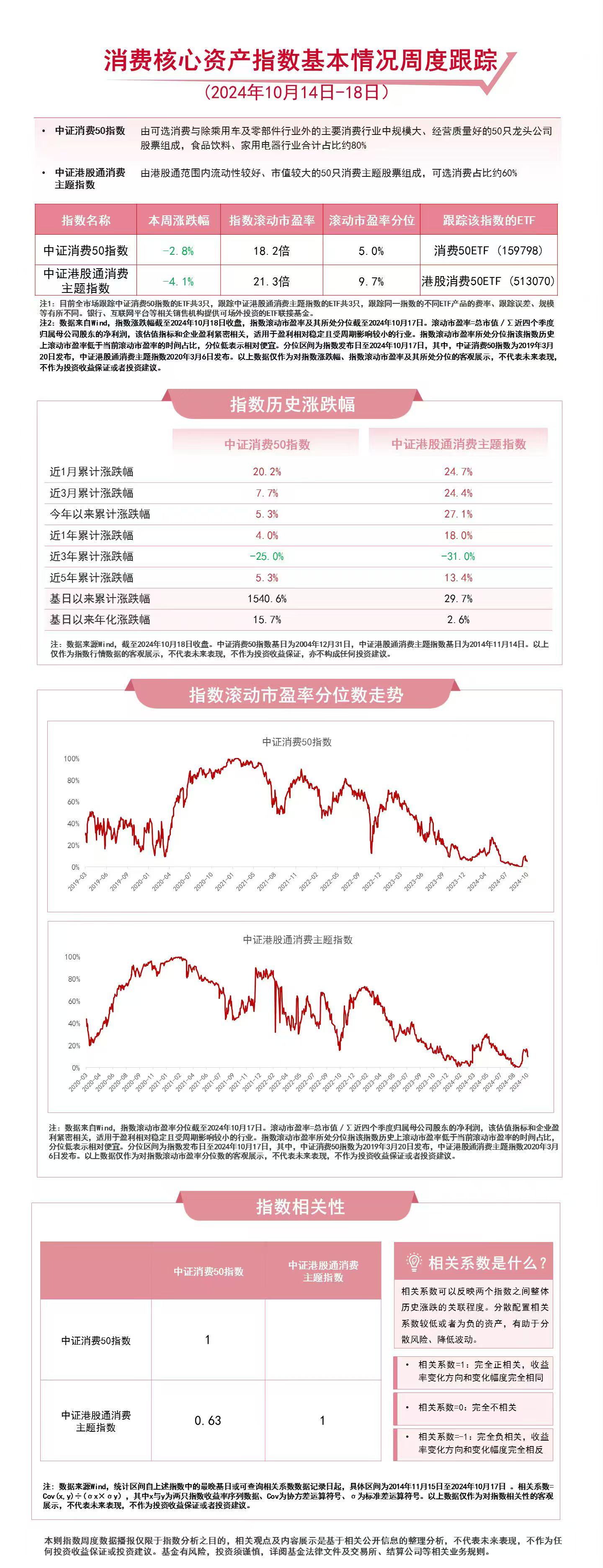 本周中证消费50指数下跌2.8%,中证港股通消费主题指数下跌4.1%。据国家统计局披露,前三季度,社会消费品零售总额35.4万亿元,同比增长3.3%,商品零售额、服务零售额分别同比增长3.0%、6.7%。