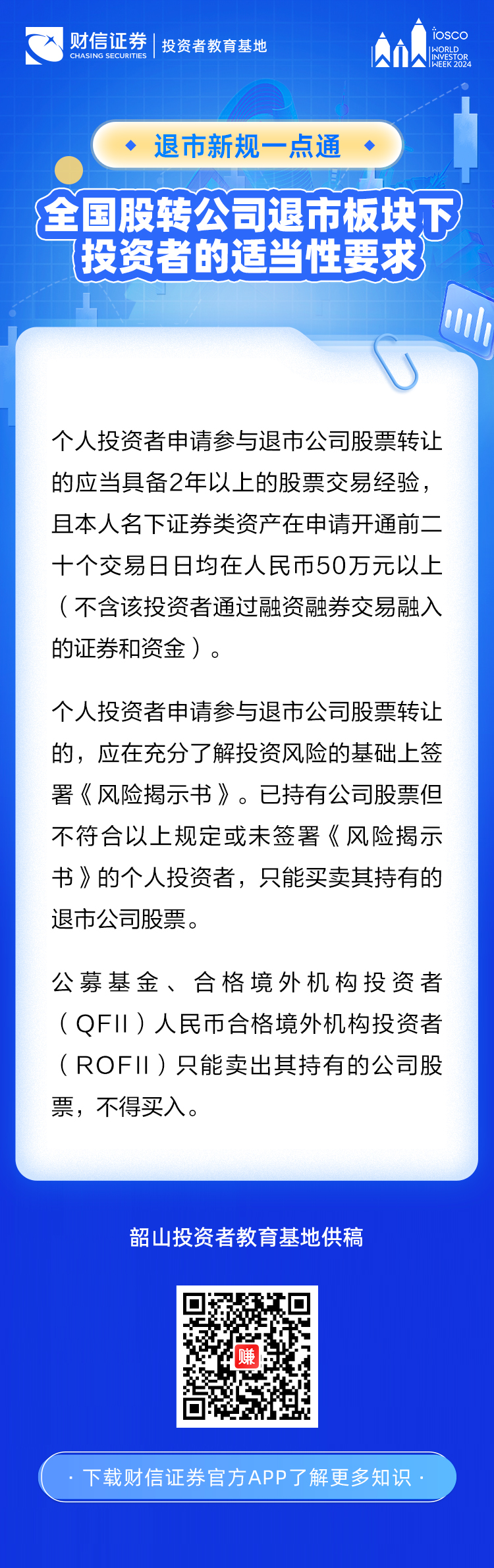 【2024年世界投资者周】退市新规一点通丨全国股转公司退市板块下投资者的适当性要求