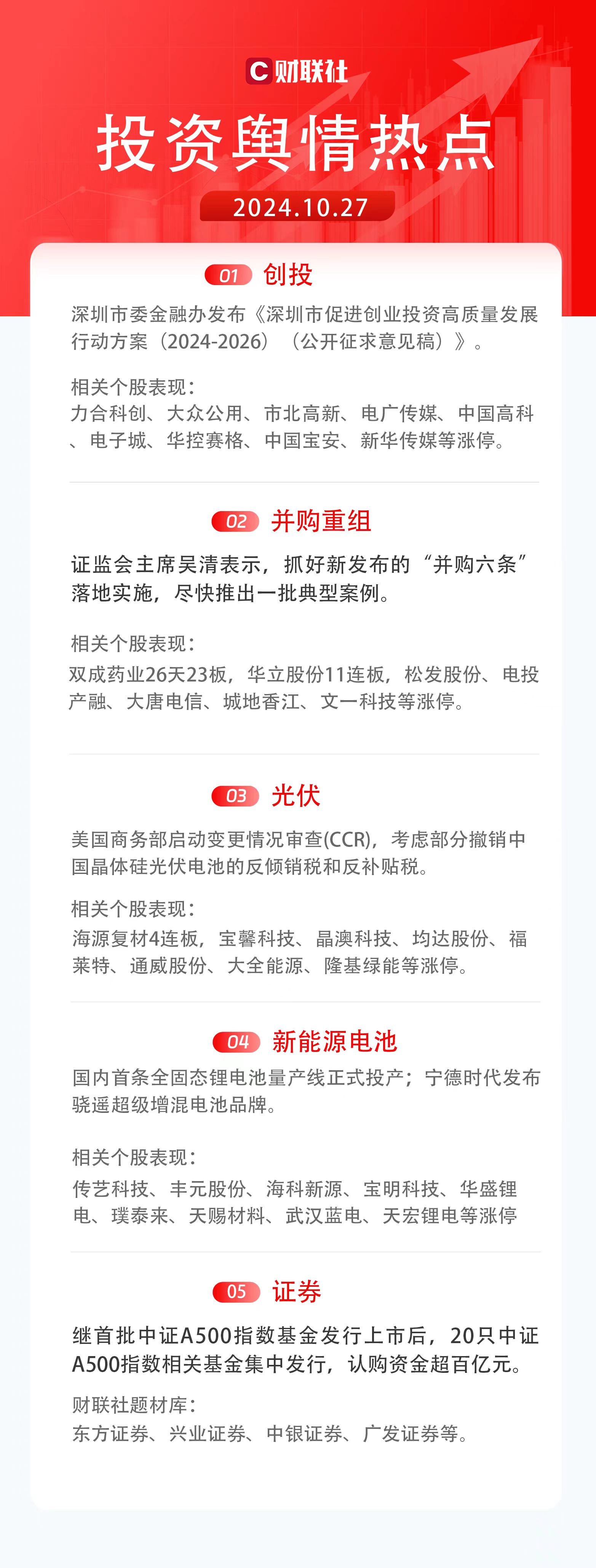 1)创投:深圳市委金融办发布《深圳市促进创业投资高质量发展行动方案(2024-2026)(公开征求意见稿)》。