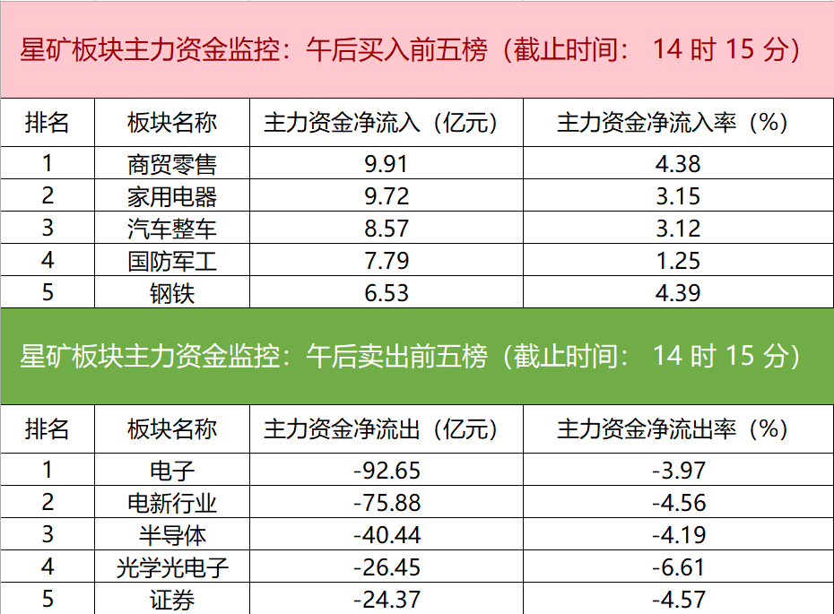 主力资金监控:电子板块净流出超92亿元