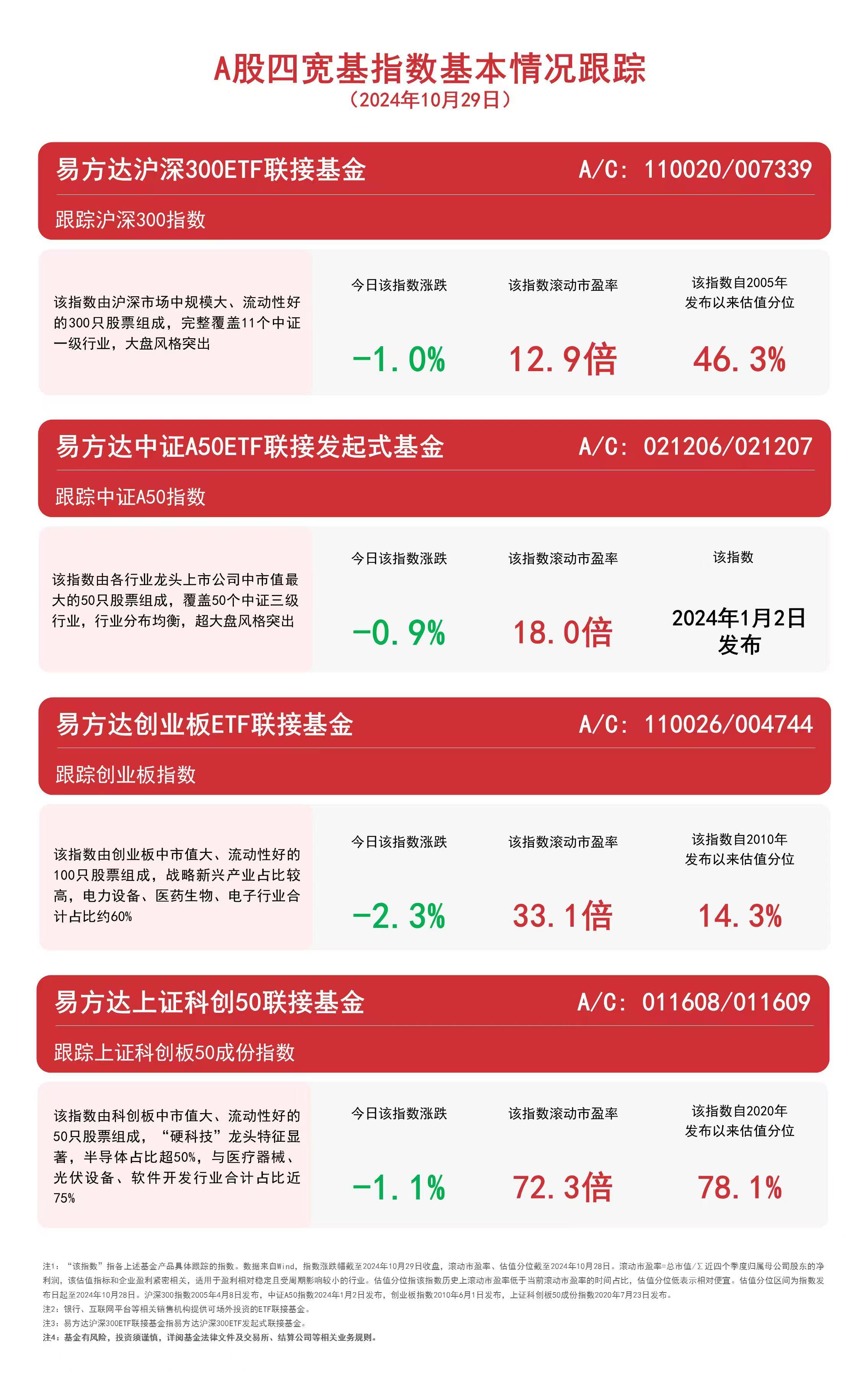 A股四宽基指数调整,关注易方达沪深300ETF联接基金(A/C: 110020/007339)等产品后续动向