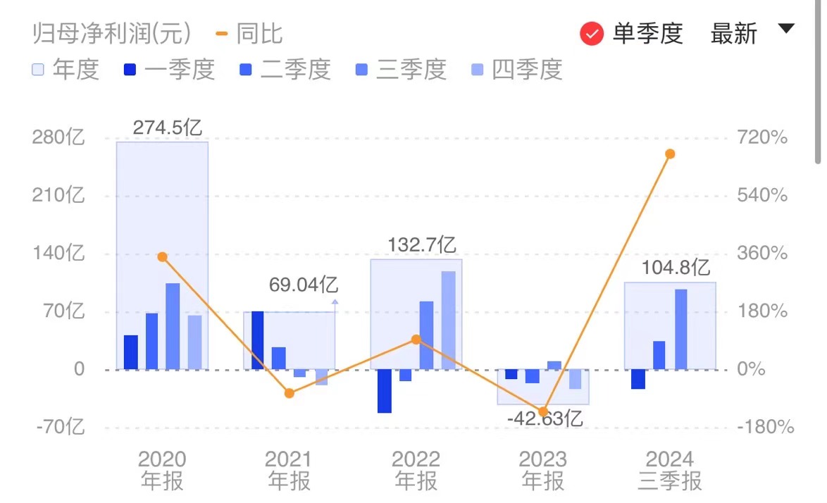 财联社10月29日电,牧原股份发布2024年第三季度报告,前三季度实现营业收入967.75亿元,同比增长16.64%;归属于上市公司股东的净利润104.81亿元,同比增长668.90%。第三季度实现营业收入399.09亿元,同比增长28.33%;归属于上市公司股东的净利润96.52亿元,同比增长930.20%。公司同日公告,拟以未来实施分配方案时股权登记日的总股本为基数,向全体股东每10股派发现金红利8.31元(含税,暂以董事会审议时总股本扣除公司已回购股份计算),分红总额4,504,917,389.42 元(含税),占公司2024 年1-9月净利润的40.06%。小财注:Q2净利32.08亿元,据此计算,Q3净利环比增长200.87%。