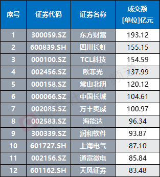 多只高位人气股现巨量成交 东方财富、四川长虹等多股成交额超100亿