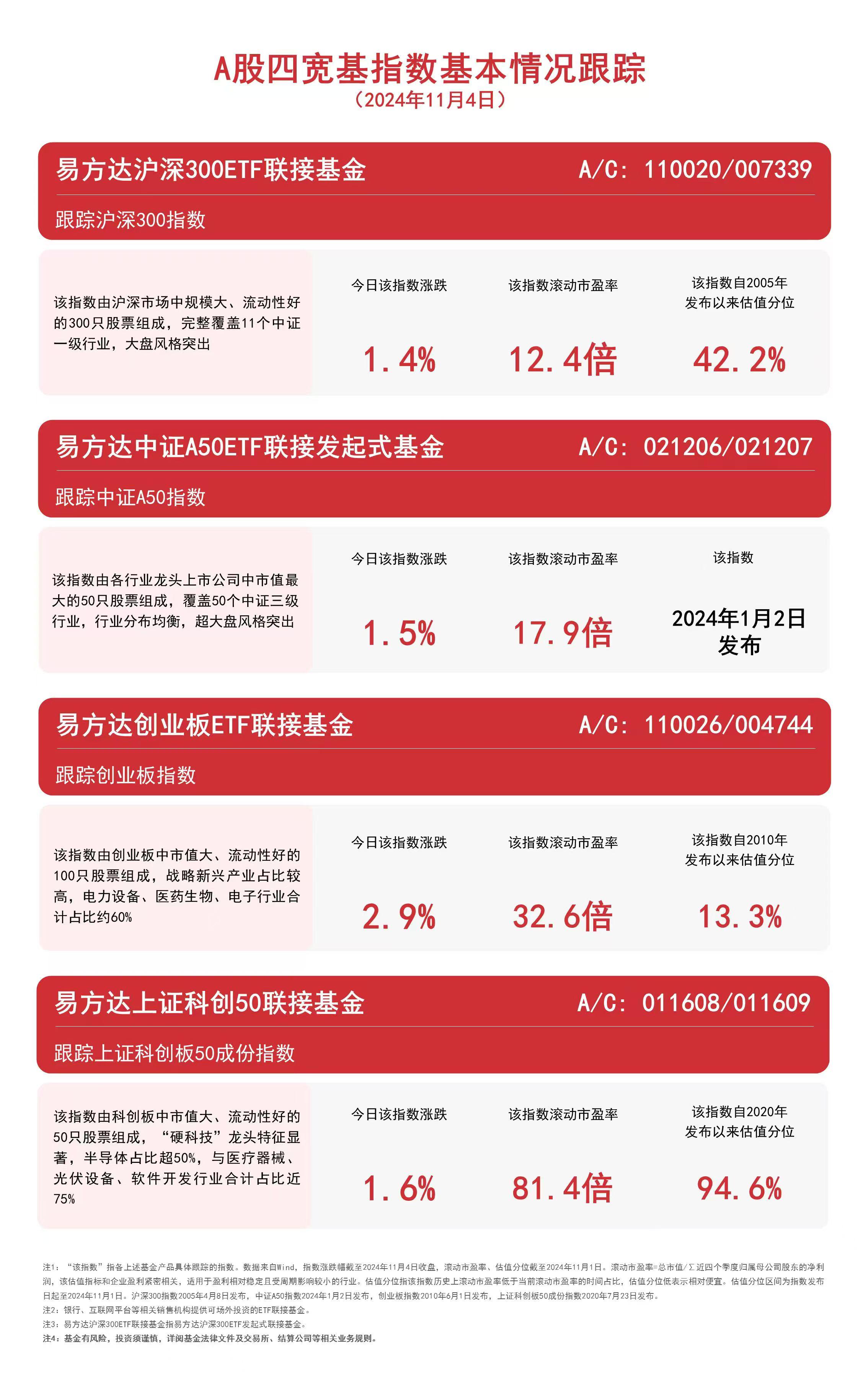 A股四宽基指数反弹,易方达沪深300ETF联接基金(A/C: 110020/007339)等产品聚焦核心资产