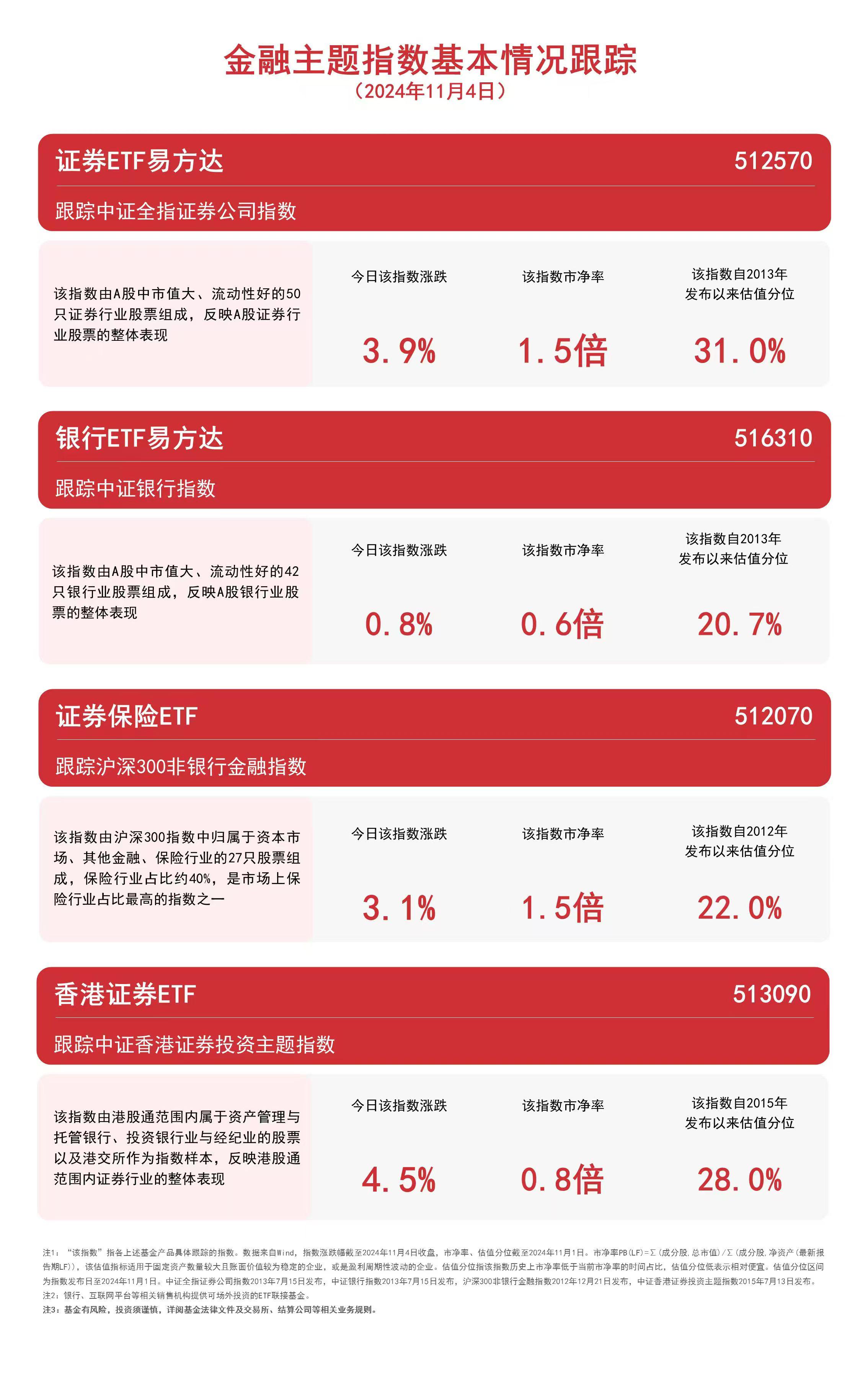 截至收盘,今日香港证券指数上涨4.5%,中证全指证券公司指数上涨3.9%,沪深300非银行金融指数上涨3.1%,中证银行指数上涨0.8%。