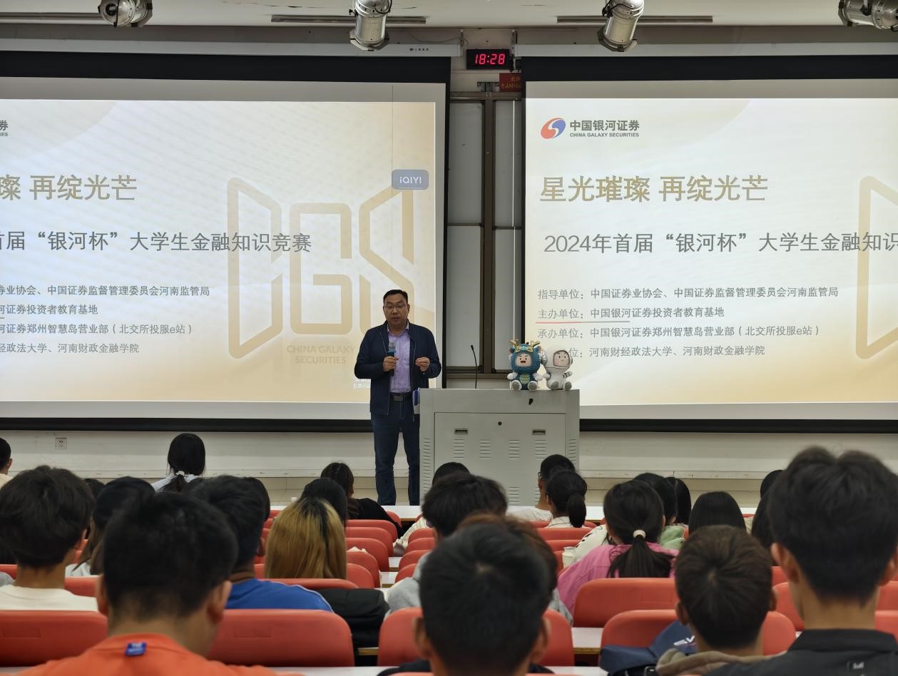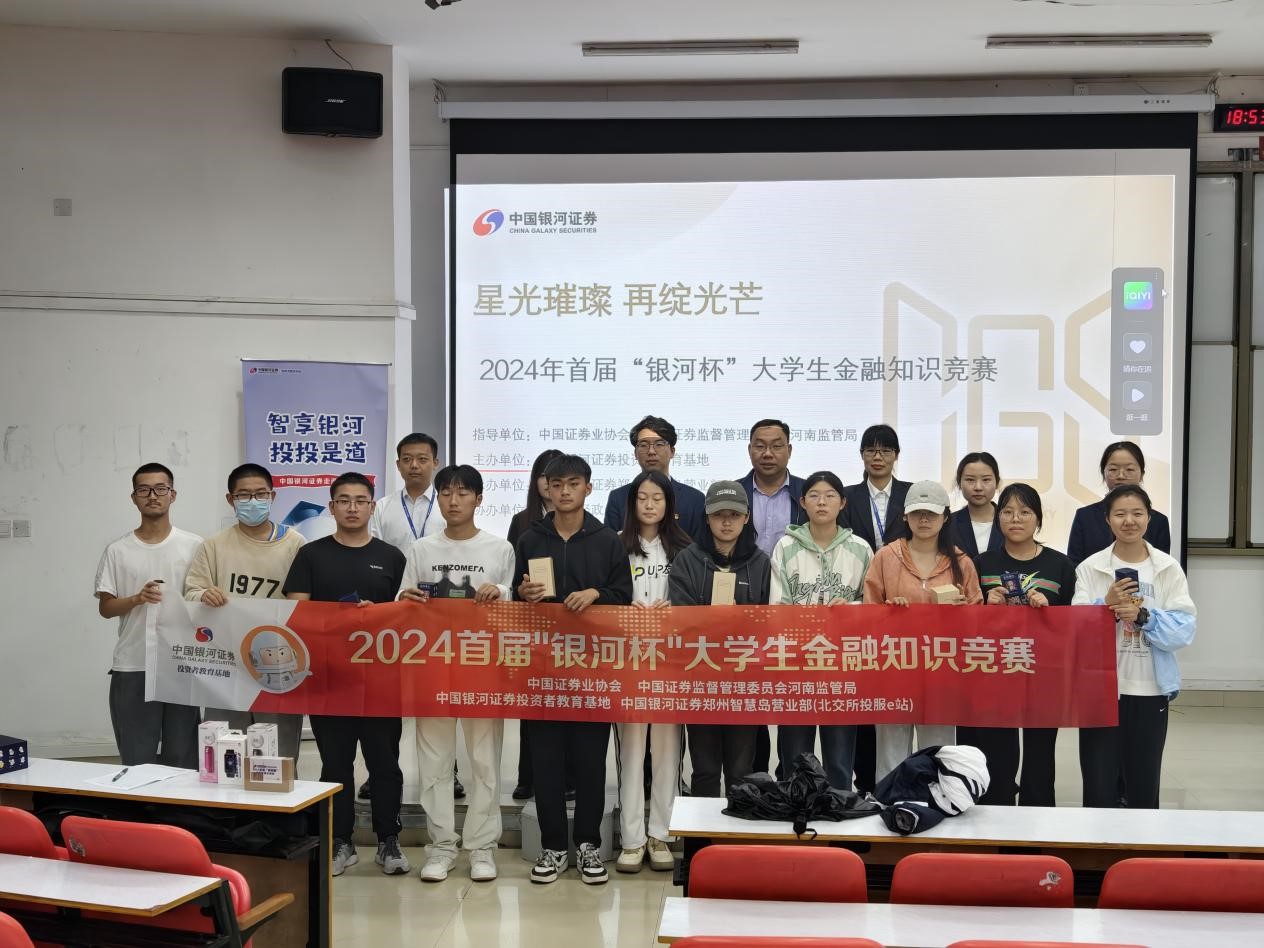 为进一步推动投资者教育纳入国民教育体系工作,切实提升在校大学生金融素养,着力培育全面注册制下与资本市场相匹配的投资者队伍,由中国证券业协会、河南证监局指导,中国银河证券投教基地主办,中国银河证券郑州智慧岛营业部(北交所投服e站)承办的2024年首届“银河杯”大学生金融知识竞赛在河南地区成功举办。