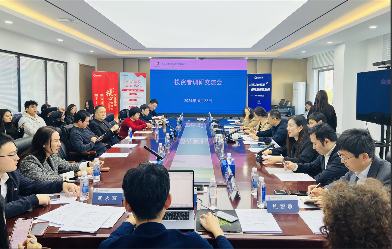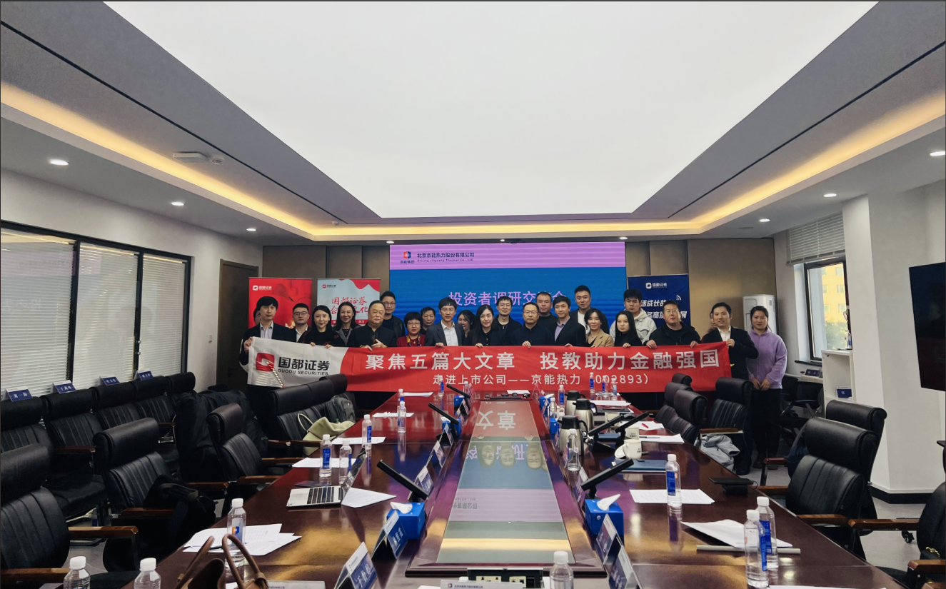 为了帮助投资者更好地理解上市公司,加强与上市公司之间的沟通交流,提高投资决策的质量,2024年10月22日,国都证券联合财联社组织开展了以“聚焦五篇大文章,投教助力金融强国”为主题的投资者走进上市公司活动。国都证券北京三元西桥证券营业部携手投资者一起走进上市公司北京京能热力股份有限公司(以下简称“京能热力”)。