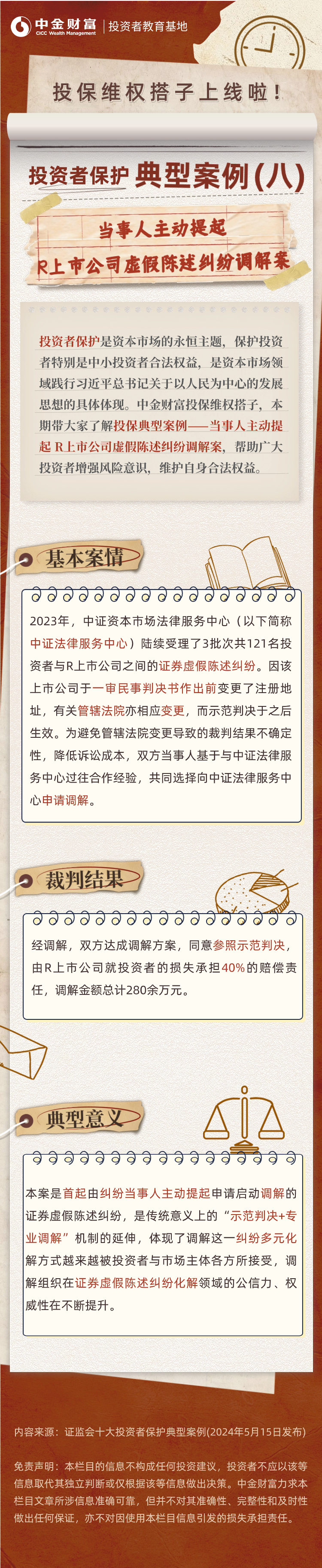 投资者保护案例(八):当事人主动提起 R 上市公司虚假陈述纠纷调解案