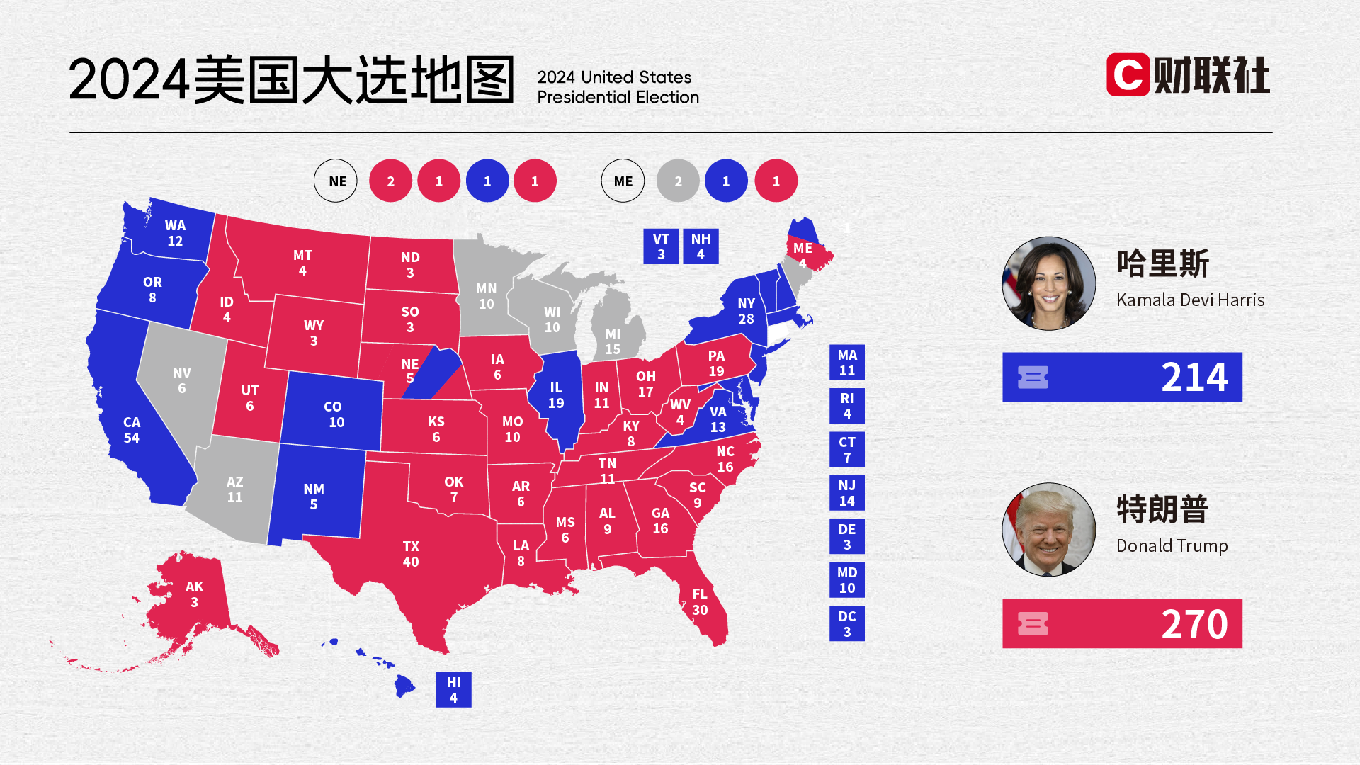 美媒测算特朗普已获至少270张选举人票 锁定2024年总统选举胜局