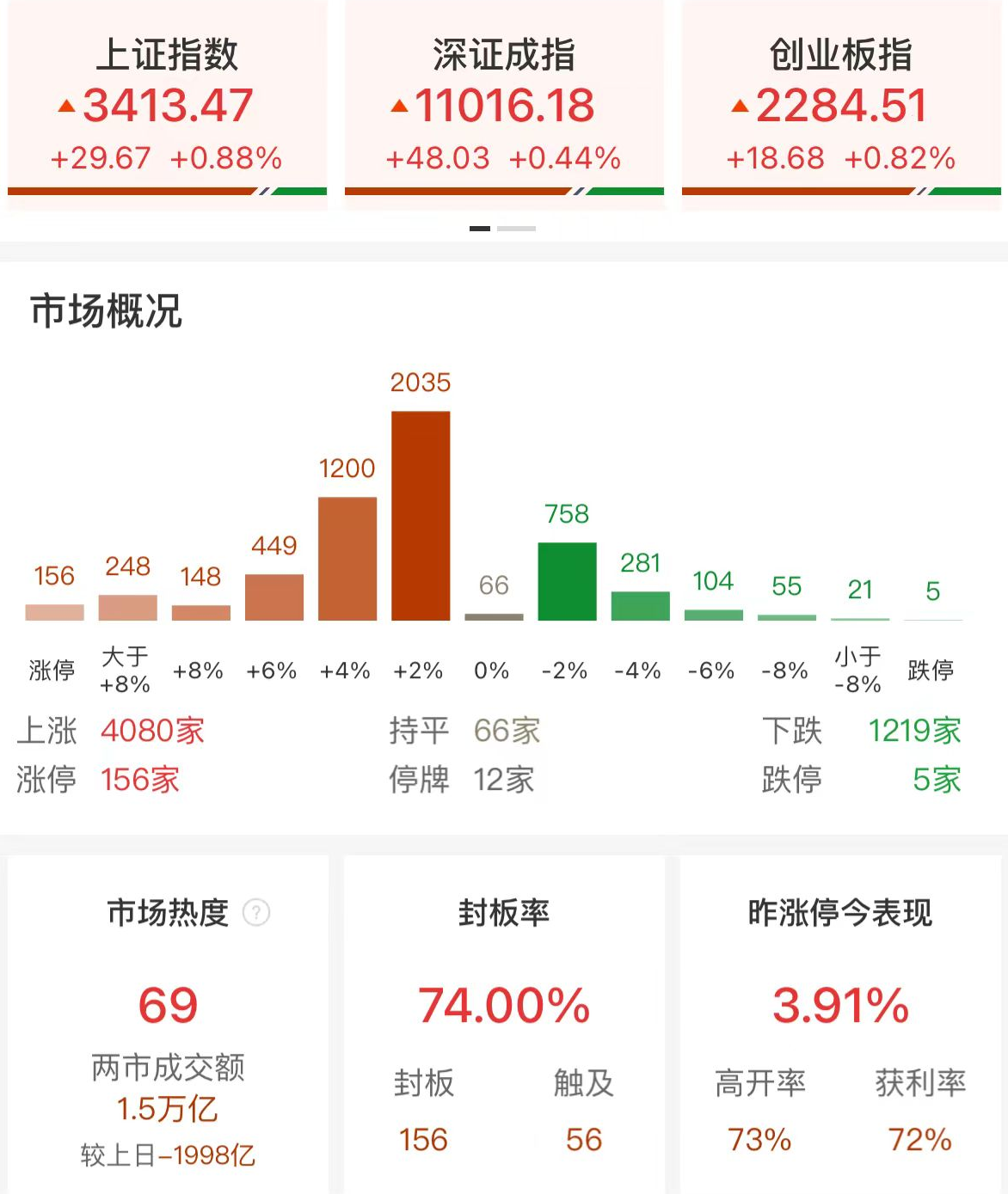 财联社11月7日电,市场早盘低开反弹,三大指数均小幅上涨。沪深两市半日成交额1.5万亿,较上个交易日缩量1998亿。盘面上,大消费股全线爆发,白酒、食品饮料、旅游、零售等多个方向大涨,酒鬼酒、水井坊、西王食品、西安饮食、中央商场等多股涨停。地产股震荡走高,南国置业、荣盛发展、绿地控股、财信发展等涨停。环保、基建股表现活跃,兴源环境、碧水源、大千生态、启迪环境等涨停。下跌方面,军工股陷入调整,中航沈飞等多股跌超5%。总体上个股涨多跌少,全市场超4000只个股上涨。板块方面,白酒、食品、旅游、零售等板块涨幅居前,贵金属、军工、光伏、飞行汽车等板块跌幅居前。截至收盘,沪指涨0.88%,深成指涨0.44%,创业板指涨0.82%。