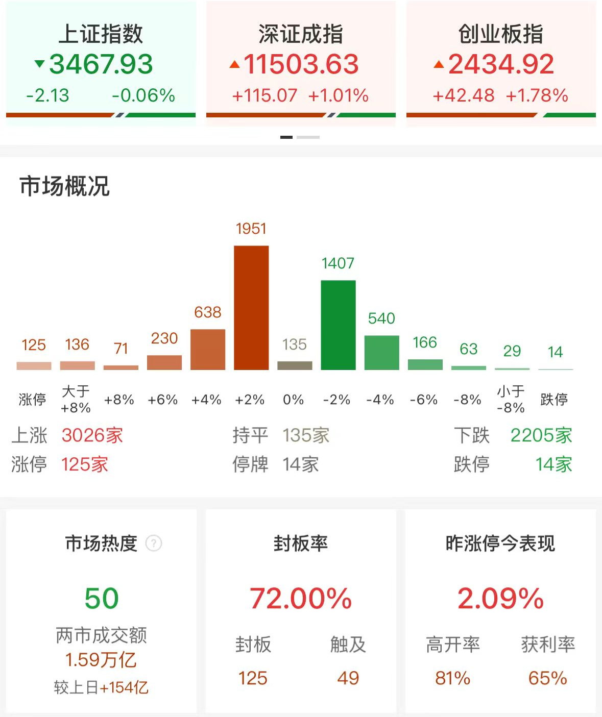 财联社11月12日电,市场早盘走势分化,三大指数涨跌不一。沪深两市半日成交额1.59万亿,较上个交易日放量154亿。盘面上,医药股全线走强,医药商业方向领涨,药易购、第一医药、健之佳、中国医药等涨停。锂电池板块一度冲高,威领股份涨停,天华新能涨超10%,宁德时代涨近5%。消费电子概念股临近收盘前异动,歌尔股份、维信诺、欧菲光、科森科技等涨停。零售股震荡反弹,宁波中百、汇嘉时代涨停。ST板块逆势活跃,ST恒久、ST曙光、ST明诚、ST易购、ST英飞拓等40股涨停。下跌方面,芯片股展开调整,江丰电子等多股跌超5%。总体上个股涨多跌少,全市场超3000只个股上涨。板块方面,医药商业、能源金属、中药、创新药等板块涨幅居前,保险、光刻机、军工电子、软件开发等板块跌幅居前。截至收盘,沪指跌0.06%,深成指涨1.02%,创业板指涨1.78%。