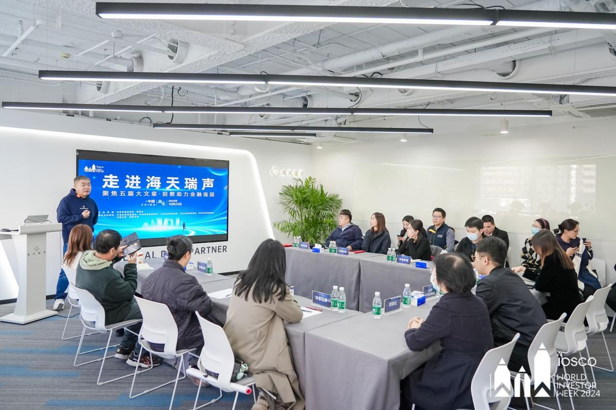 2024年10月23日,正值“2024世界投资者周”,华泰证券投教基地联合北京证券业协会、财联社共同主办了“聚焦五篇大文章,投教助力金融强国”系列专题投教活动。本次活动围绕“科技和数字金融”和“可持续金融”两大主题开展走进上市公司——海天瑞声,共邀请20余名投资者及工作人员参加本次活动。