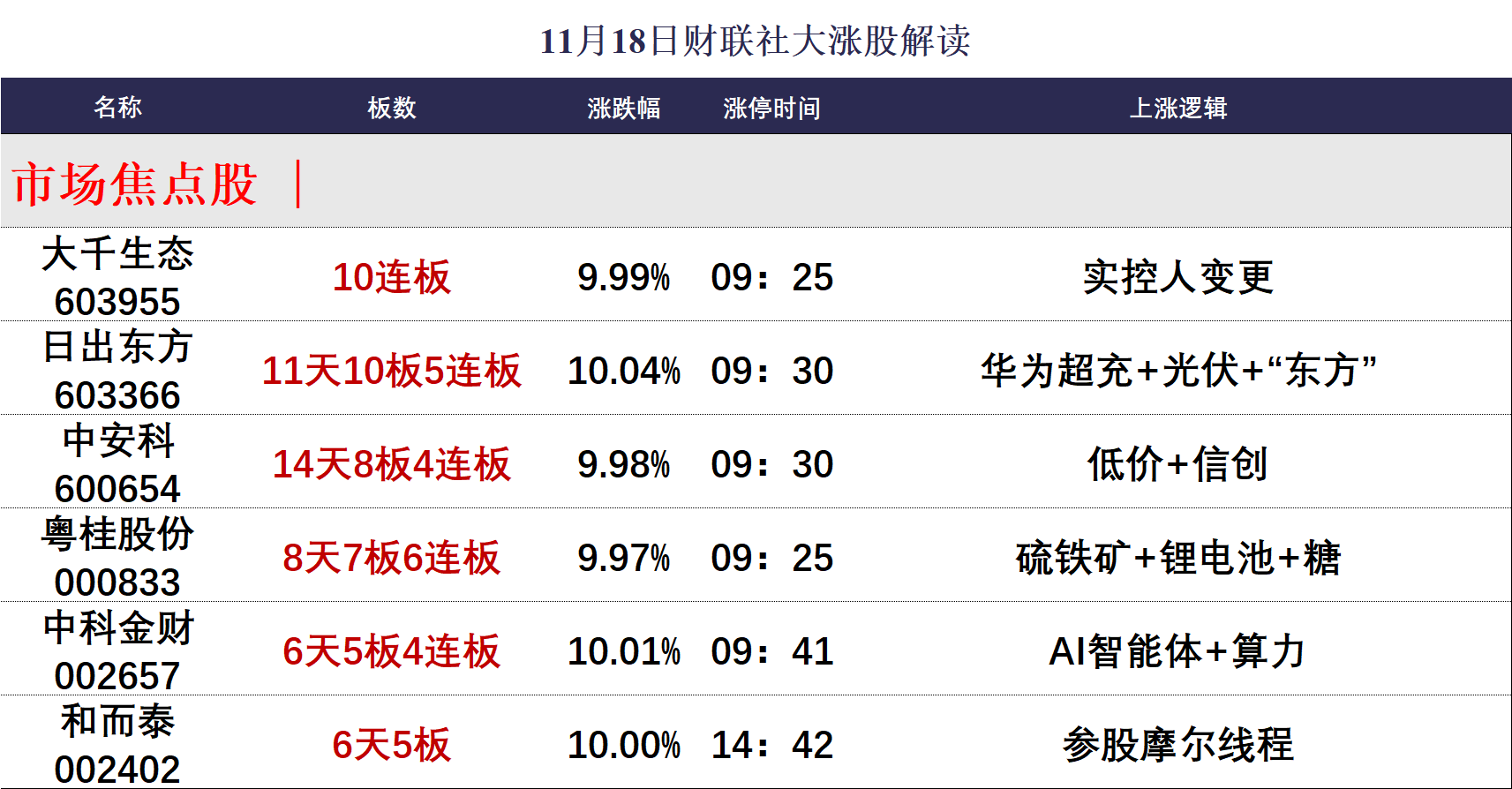 11月18日涨停分析