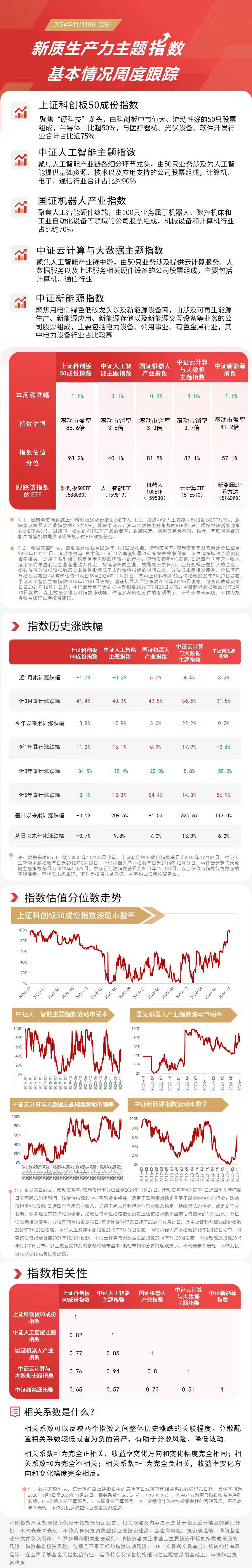 本周国证机器人产业指数下跌0.8%,中证新能源指数下跌1.6%,上证科创板50成份指数下跌1.8%,中证人工智能主题指数下跌3.1%,中证云计算与大数据主题指数下跌4.0%。