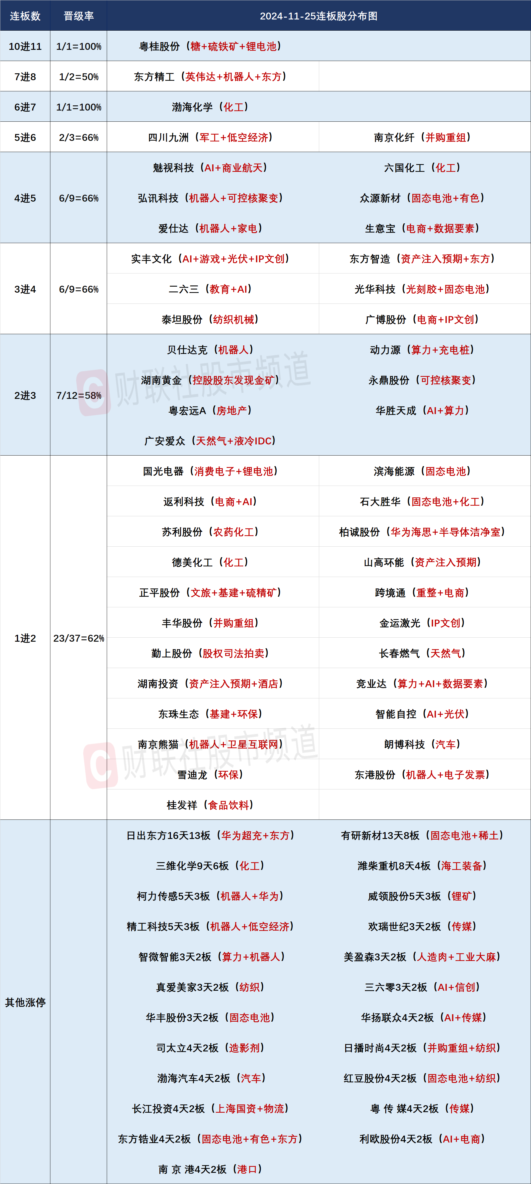 今日共157股涨停,连板股总数47只,其中三连板及以上个股24只,上一交易日共37只连板股,连板股晋级率64.86%(不含ST股、退市股)。个股方面,全市场超3700只个股上涨,逾150股涨停,逾200股涨超9%。小盘股表现远强于大盘股,上证50指数仍未能止跌。高位股方面,人气高标多数继续走强,粤桂股份11连板,日出东方16天13板,有研新材13天8板。不过值得注意的是,连板股一旦掉队,亏钱效应十分剧烈,大东方、佛塑科技、海宁皮城、锦江在线、渤海股份等跌停。板块方面,固态电池板块全线爆发,前排个股粤桂股份、有研新材、众源新材等纷纷晋级,后排个股山东章鼓、普路通、圣阳股份等也展开补涨;以文创玩具为代表的谷子经济概念崛起,实丰文化、广博股份双双一字涨停晋级4连板,金运激光20CM2连板,德邦证券最新研报称,“谷子经济”以其背后的IP授权与运营能力为根本,建议关注具备全产业链能力、旗下IP快速传播的龙头标的。