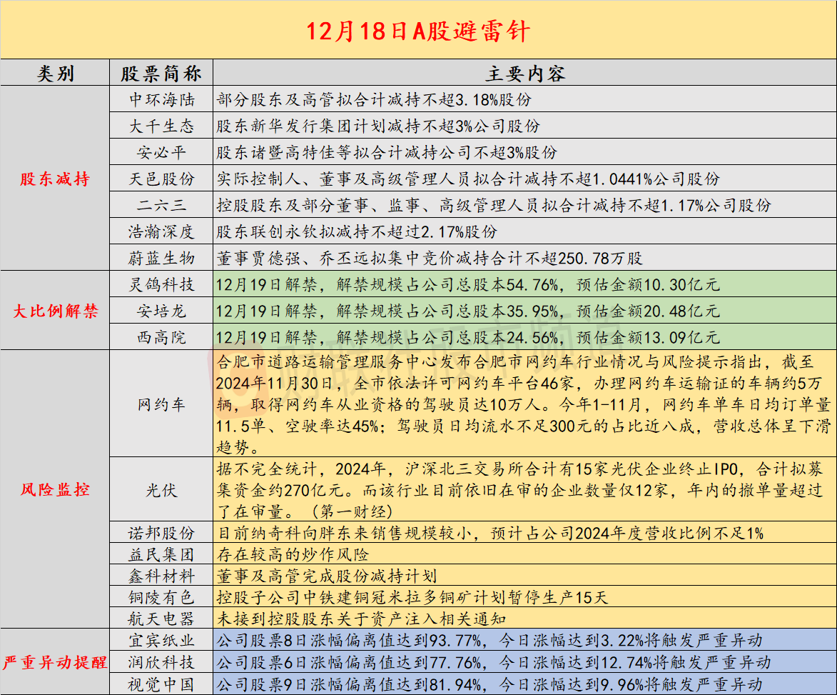 12月18日股市避雷针