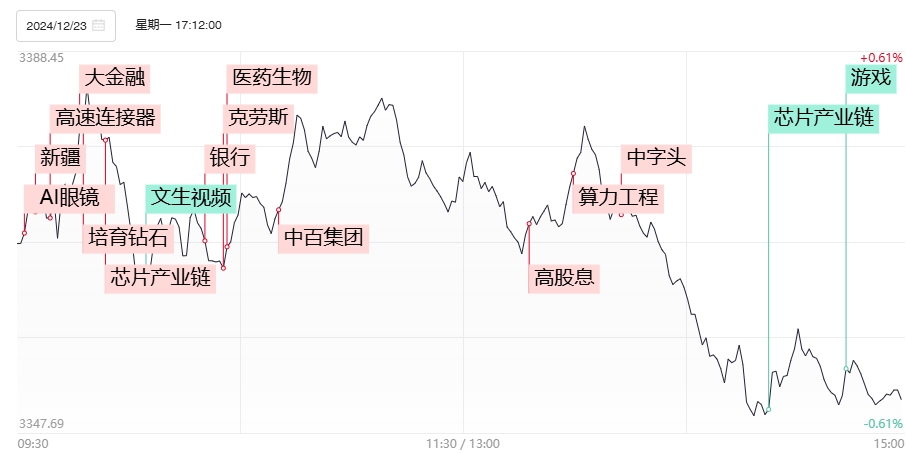 财联社12月24日电,市场全天震荡走低,大小指数明显分化,微盘股指数跌超7%,全市场近4800只个股下跌,逾200股跌停。沪深两市全天成交额1.53万亿,较上周五放量157亿。1)根据民生证券研报,国内字节AI数据中心多采用H20版GPU,但其海外数据中心已配备H100和Blackwell较顶级GPU,并签约成为马来西亚新数据中心的主要租户。上周领涨的抖音豆包概念中,业绩确定性较高的算力硬件以及算力租赁方向仍逆势走强,城地香江、电光科技涨停,高澜股份、润泽科技、科华数据等多股位居涨幅前列。2)12月18日微信团队公告,微信小店正式开启“送礼物”功能的灰度测试。受制于港股人气风向标微盟集团、东方甄选双双走出冲高回落行情,微信小店概念并未延续上周强势,仅有实益达实现晋级3连板,上周五缩量一字板晋级的元隆雅图全天呈现放量巨震,天地在线、信雅达更是双双报收跌停。3)中字头以及高股息红利股全天逆势表现坚挺,中船科技午后逆势涨停,中国核电涨超5%,“工农中建”四大行股价盘中均创出历史新高。而叠加并购重组概念的央企股克劳斯盘中走出“地天板”行情实现晋级4连板。4)12月19日北京大学东莞光电研究院发布最新研究成果,该院与南方科技大学、香港大学组成的联合研究团队,在金刚石薄膜材料制备和应用方面取得重要进展,成功开发出能够批量生产大尺寸超光滑柔性金刚石薄膜的制备方法。培育钻石概念受此消息刺激全天逆势大涨,惠丰钻石、力量钻石、黄河旋风、四方达等逆势飙涨。
