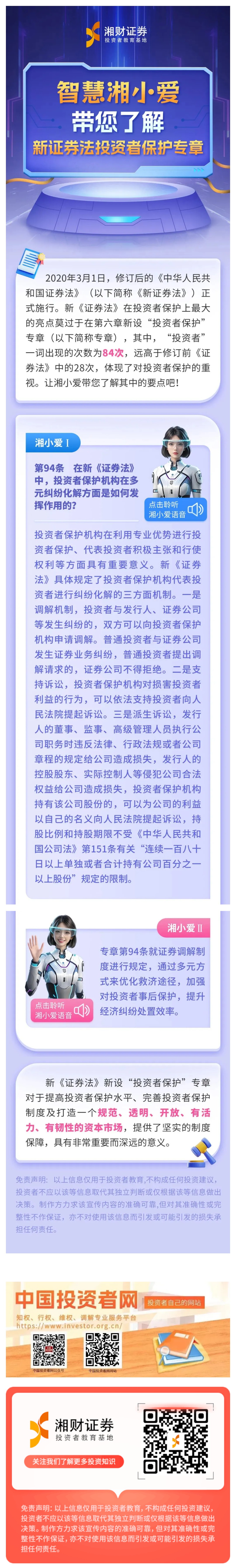 【智慧湘小爱 | 证券法解读】在新《证券法》中,投资者保护机构在多元纠纷化解方面是如何发挥作用的?