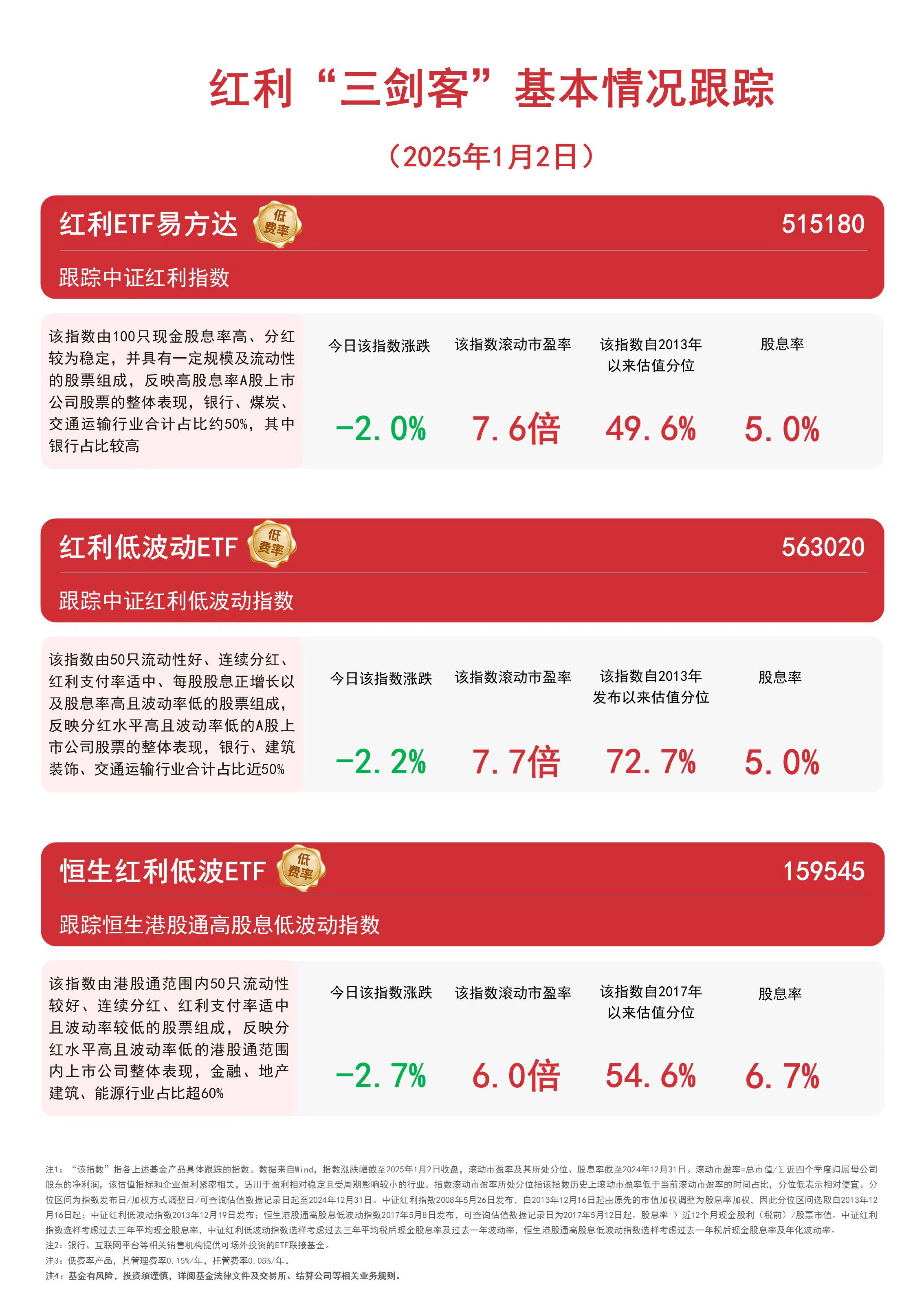 红利“三剑客”走弱,关注红利ETF易方达(515180)、红利低波动ETF(563020)等产品走势
