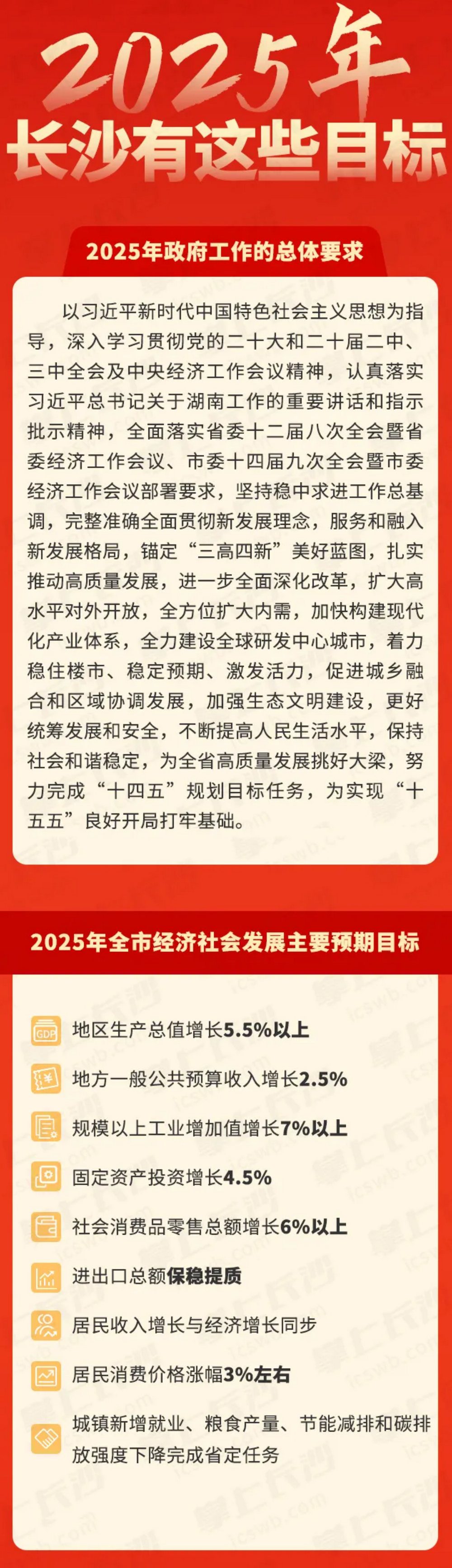 长沙:2025年全市地区生产总值预期目标增长5.5%以上