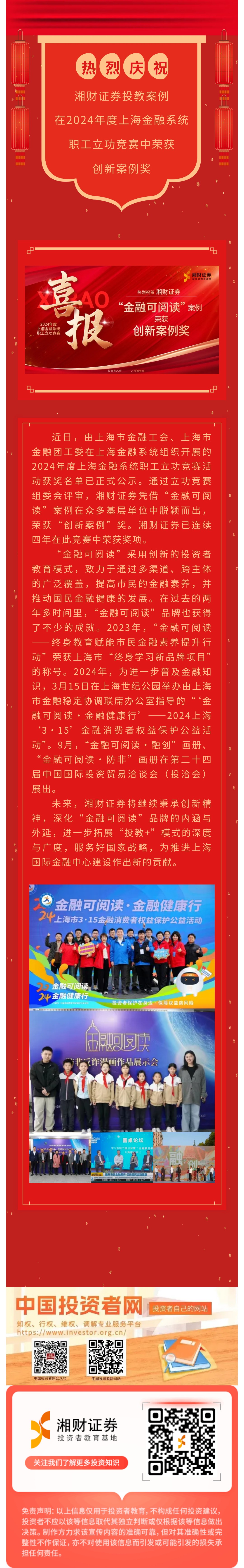 【喜报】热烈祝贺湘财证券投教案例在2024年度上海金融系统职工立功竞赛中荣获创新案例奖