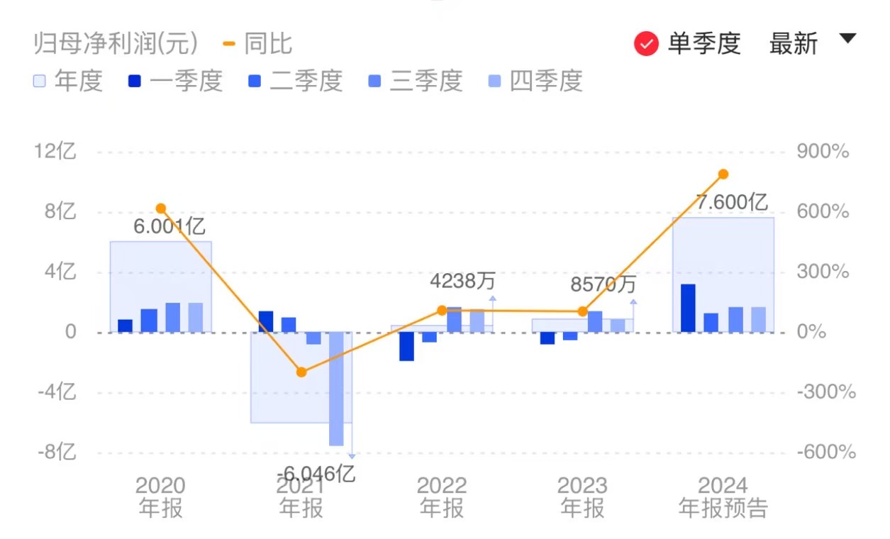 财联社1月21日电,长盈精密发布2024年度业绩预告,预计归属于上市公司股东的净利润为7亿-8.2亿元,比上年同期增长716.78%-856.79%;扣除非经常性损益后的净利润为4.6亿-5.8亿元,比上年同期增长2368.86%-3012.91%。消费类电子及新能源市场持续复苏向好,报告期营业收入创历史新高。小财注:Q3净利1.61亿元,据此测算,Q4净利预计1.06亿元-2.26亿元,环比变动为-34.16%至40.37%。