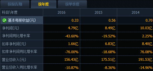 豫园股份在2016年财报中将下滑源于归于行业环境,其解释称报告期内公司财务指标同期下降的主要原因是:整个黄金珠宝行业销售均在下滑。