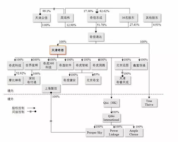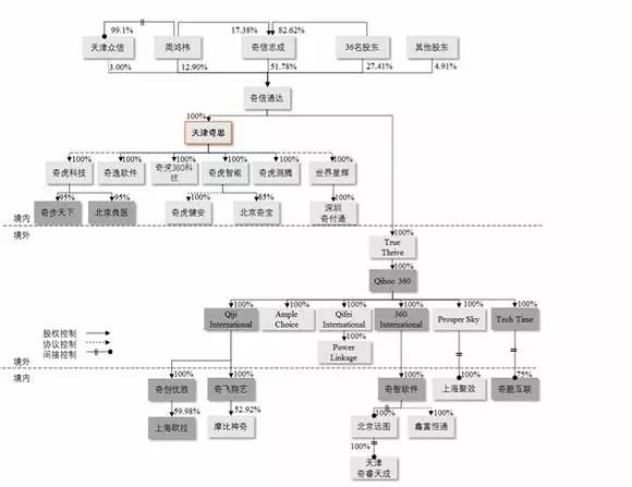 公开资料显示,Qihoo 360的企业安全业务原本通过北京奇信安科技有限公司开展,后者由奇智软件通过协议控制的方式控制。在2016年7月,齐向东与宁波梅山保税港区安源创志股权投资合伙企业(有限合伙)双双向北京奇信安增资,奇虎科技的持股比例由75%下滑至33.75%,从而失去了对北京奇信安的控制。