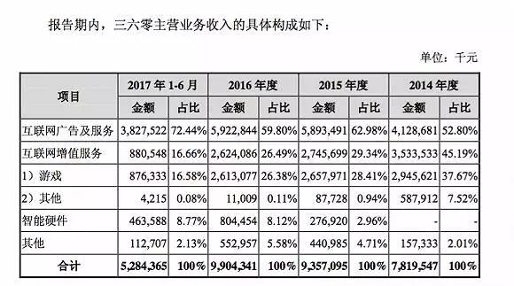 重组方案显示,2014年到2017年上半年,三六零业务的营业收入分别为78.2亿元、93.6亿元、99亿元和52.9亿元,归属于母公司股东的扣除非经常性损益后的净利润分别为5.3亿元、10.7亿元、7.4亿元和10亿元。