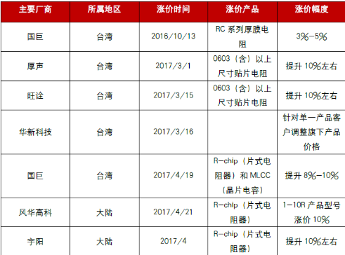 自去年第三季度至今,被动元件价格持续上涨。产品主要涉及MLCC和R-Chip(片式电阻器),MLCC平均提价幅度在20%以上,R-Chip提价幅度略小于MLCC,而在MLCC产品中,常规格产品提价幅度较小,小尺寸、高电容等高端MLCC产品提价幅度最大。