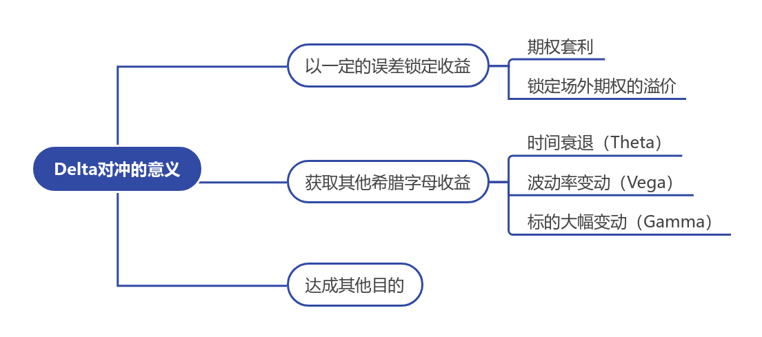 Delta对冲的意义在于,通过构建Delta中性的投资组合,交易者可以尝试抵消标的资产价格变动对投资组合整体价值的影响,从而:(1)以一定的误差锁定收益;(2)专注于获取其他希腊字母的收益。