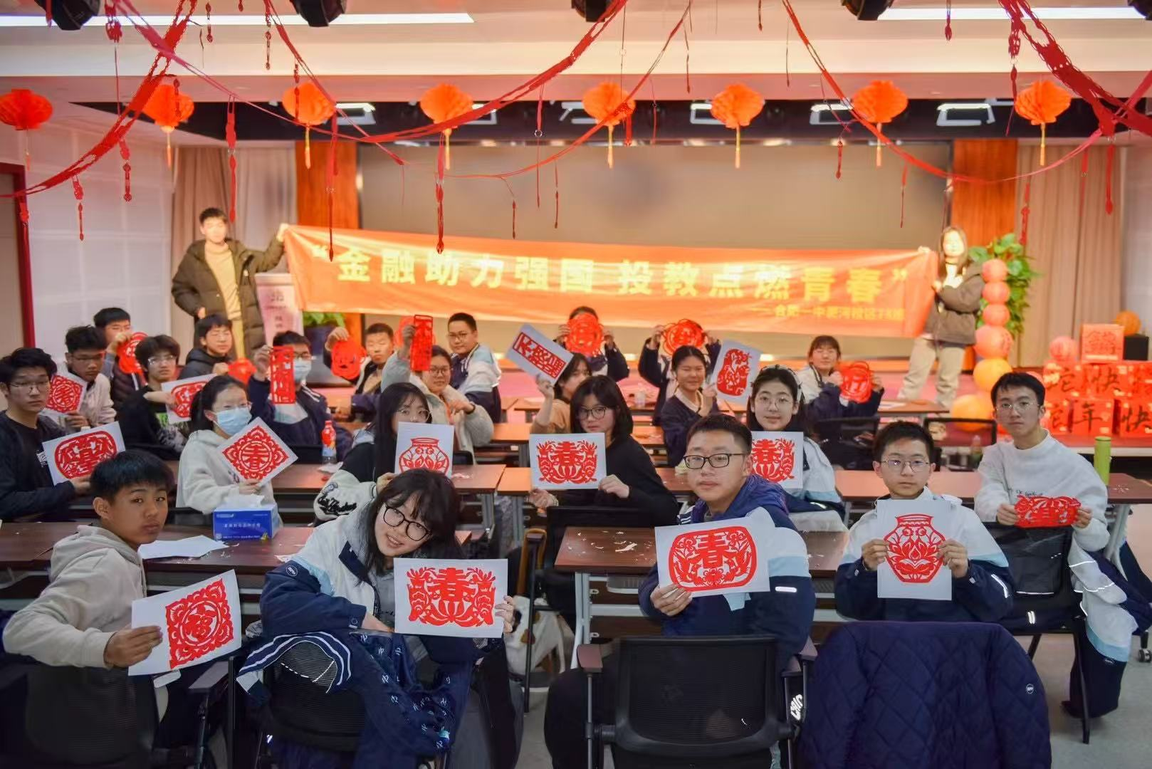 为喜迎新春佳节,2025年1月22日,系列活动首站国元证券投教基地携手合肥一中。活动当日,合肥一中的同学们满怀期待,早早来到国元证券投教基地,现场气氛热烈。活动开场,剪纸艺术家通过生动的故事讲述与精美的图片展示,将剪纸艺术从古老民间习俗到现代艺术应用的历史渊源与文化内涵娓娓道来,同学们对这一传统艺术形式有了深刻认知。实操环节中,艺术家亲自示范剪纸技巧,同学们认真学习、积极动手,最终用剪纸作品拼出“理性投资伴我行,不相信、不轻信、不被骗” 的字样,以独特方式传递理性投资理念。