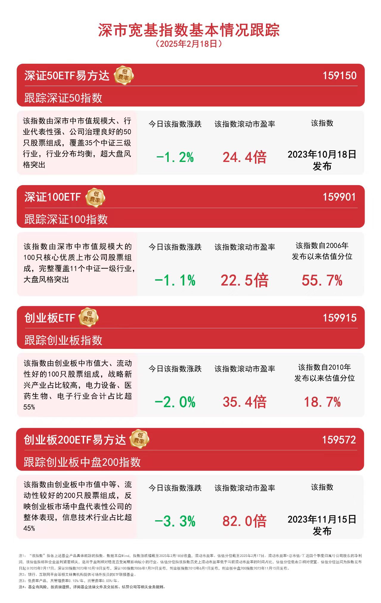 深市成交额超1.1万亿元,创业板200ETF易方达(159572)、深证50ETF易方达(159150)等聚焦深市龙头