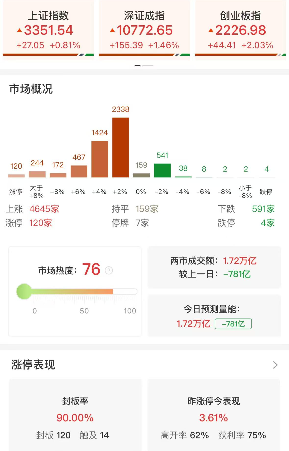 财联社2月19日电,市场全天震荡反弹,创业板指领涨,北证50指数涨超5%。沪深两市全天成交额1.72万亿,较上个交易日缩量781亿。盘面上,市场热点轮番活跃,个股普涨,全市场超4600只个股上涨,逾200股涨超9%。从板块来看,机器人概念股再度爆发,长盛轴承等多股创历史新高。芯片股震荡走高,韦尔股份等涨停。DeepSeek、算力等方向迎来修复,平治信息等10余股涨停。板块方面,人形机器人、半导体、可控核聚变、算力等板块涨幅居前,银行等少数板块下跌。截至收盘,沪指涨0.81%,深成指涨1.46%,创业板指涨2.03%。