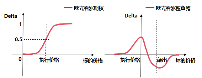 Delta衡量的是标的资产变动一个单位,期权价值产生的变化。然而,从下图中很容易看出,Delta并非是一成不变的,甚至,在复杂结构中,Delta随标的价格的变化往往更加剧烈。