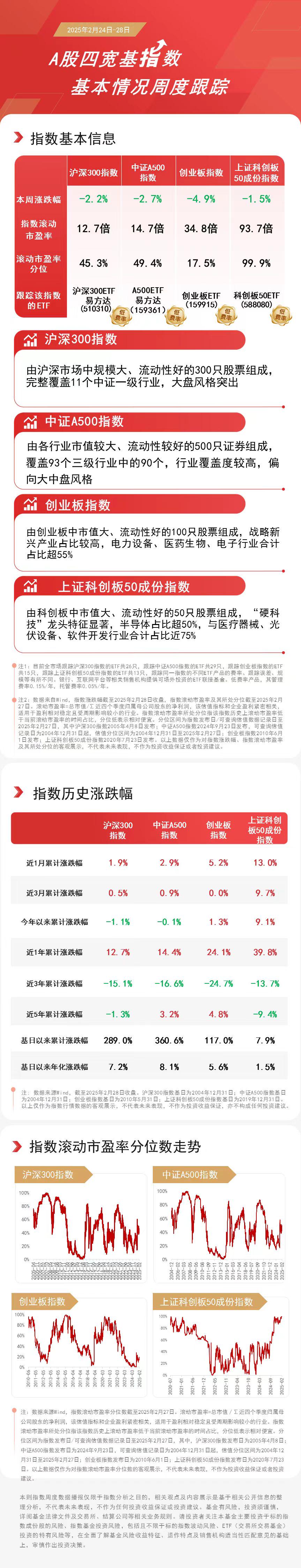 大盘本周震荡调整,全市场成交额近10万亿元,较上周放量。指数方面,沪深300指数下跌2.2%,中证A500指数下跌2.7%,创业板指数下跌4.9%,上证科创板50成份指数下跌1.5%。