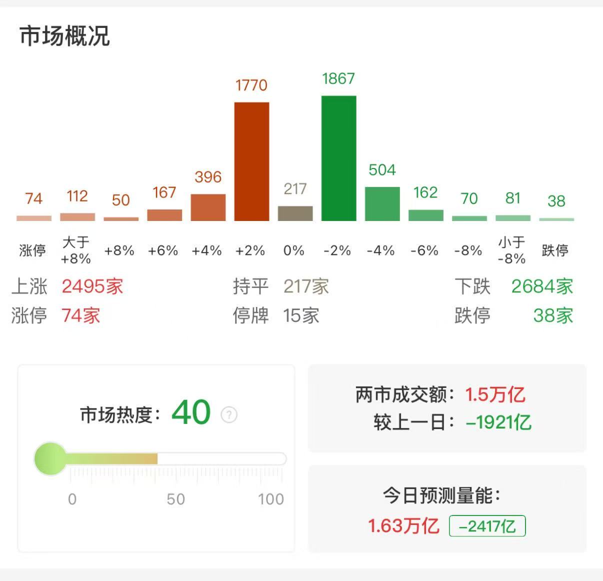 沪深两市成交额突破1.5万亿 较上一日此时缩量超1900亿