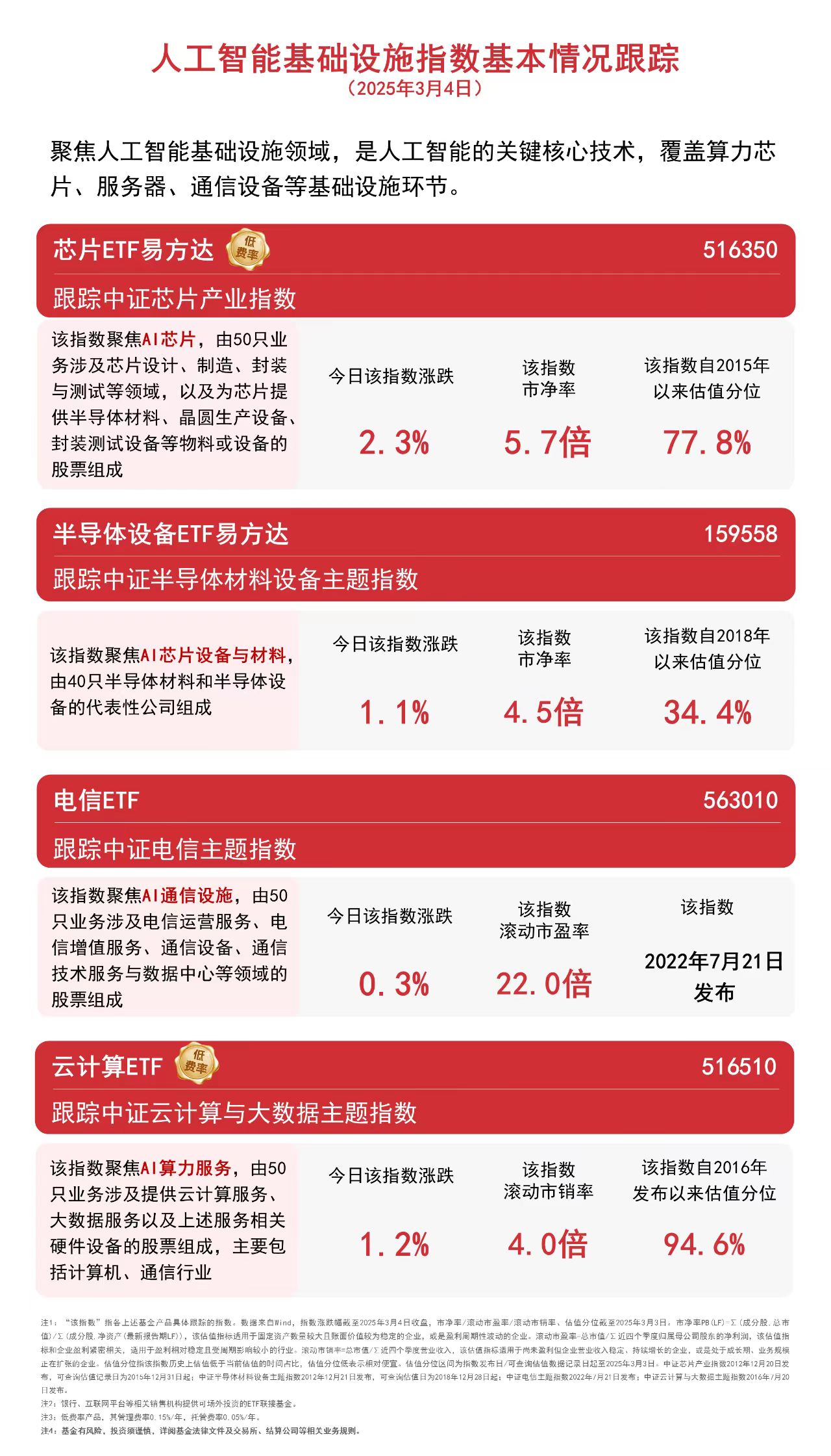 指数集体上行,芯片ETF易方达(516350)、云计算ETF(516510)等产品助力布局人工智能基础设施