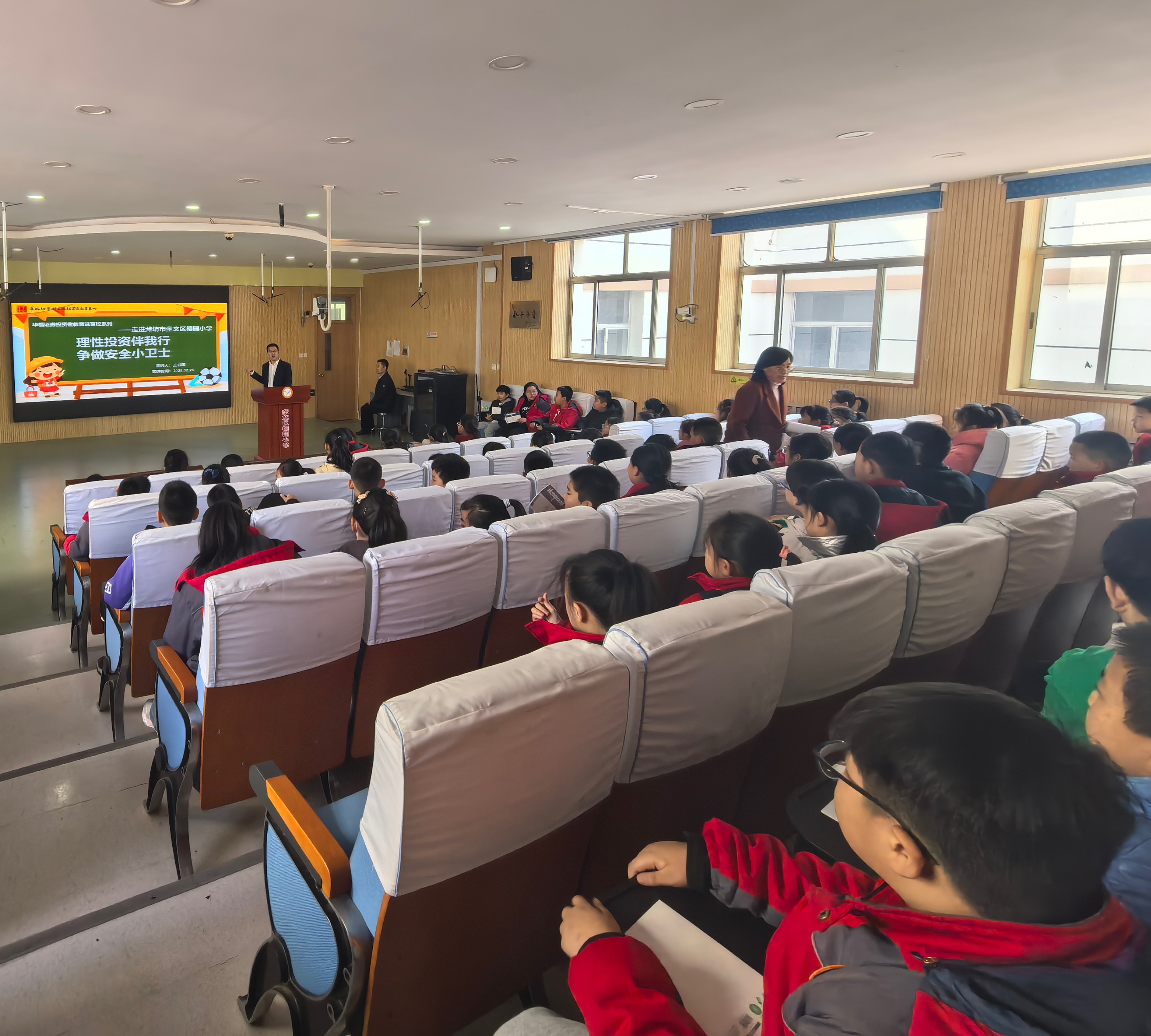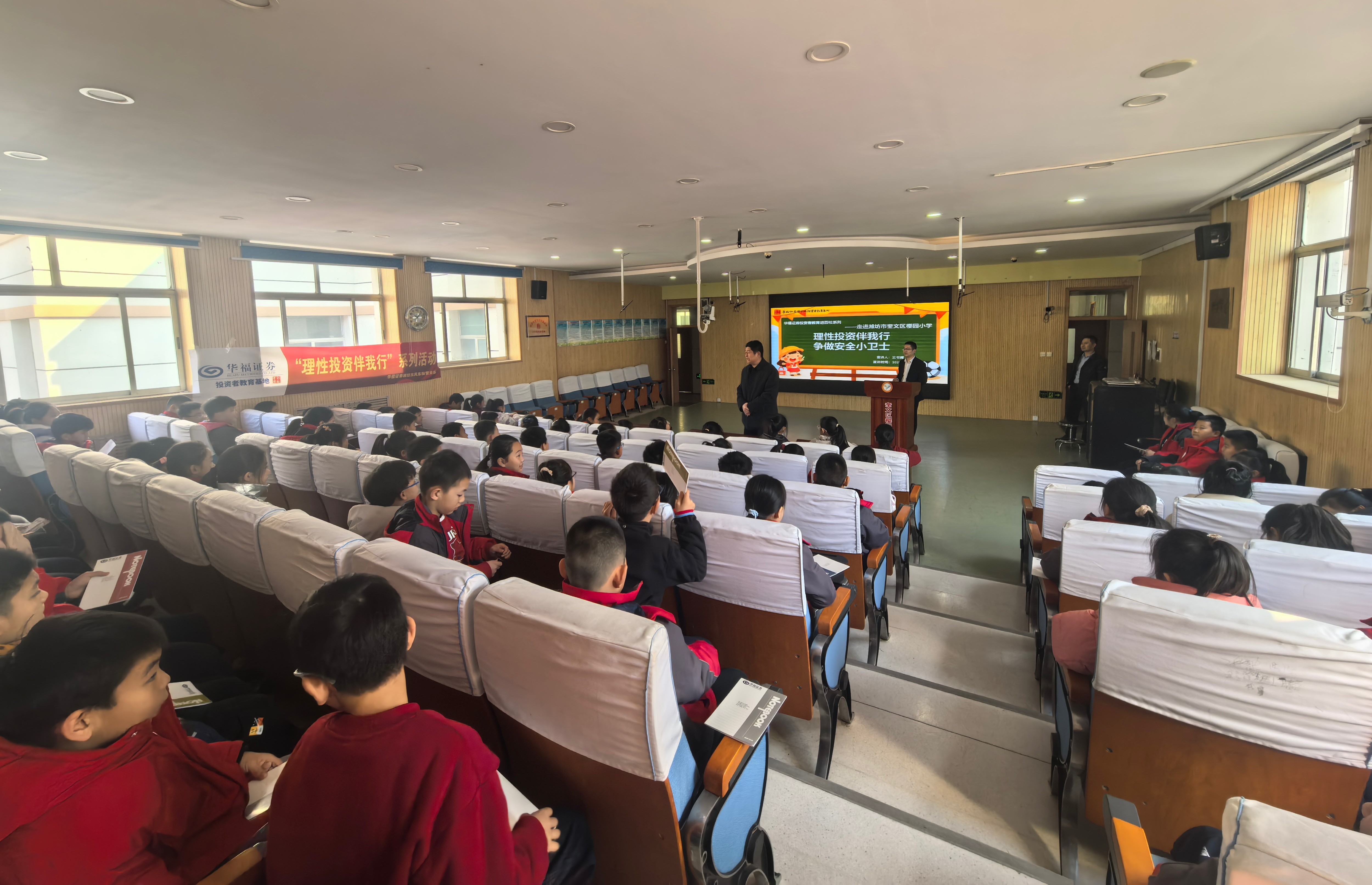 为积极响应“推动投资者教育纳入国民教育体系工作”的倡议,进一步提升广大学生的金融素养,强化风险防范意识,2月26日,华福证券潍坊东风东街证券营业部(以下简称营业部)走进潍坊市奎文区樱园小学,开展了一场别开生面的金融知识讲座。