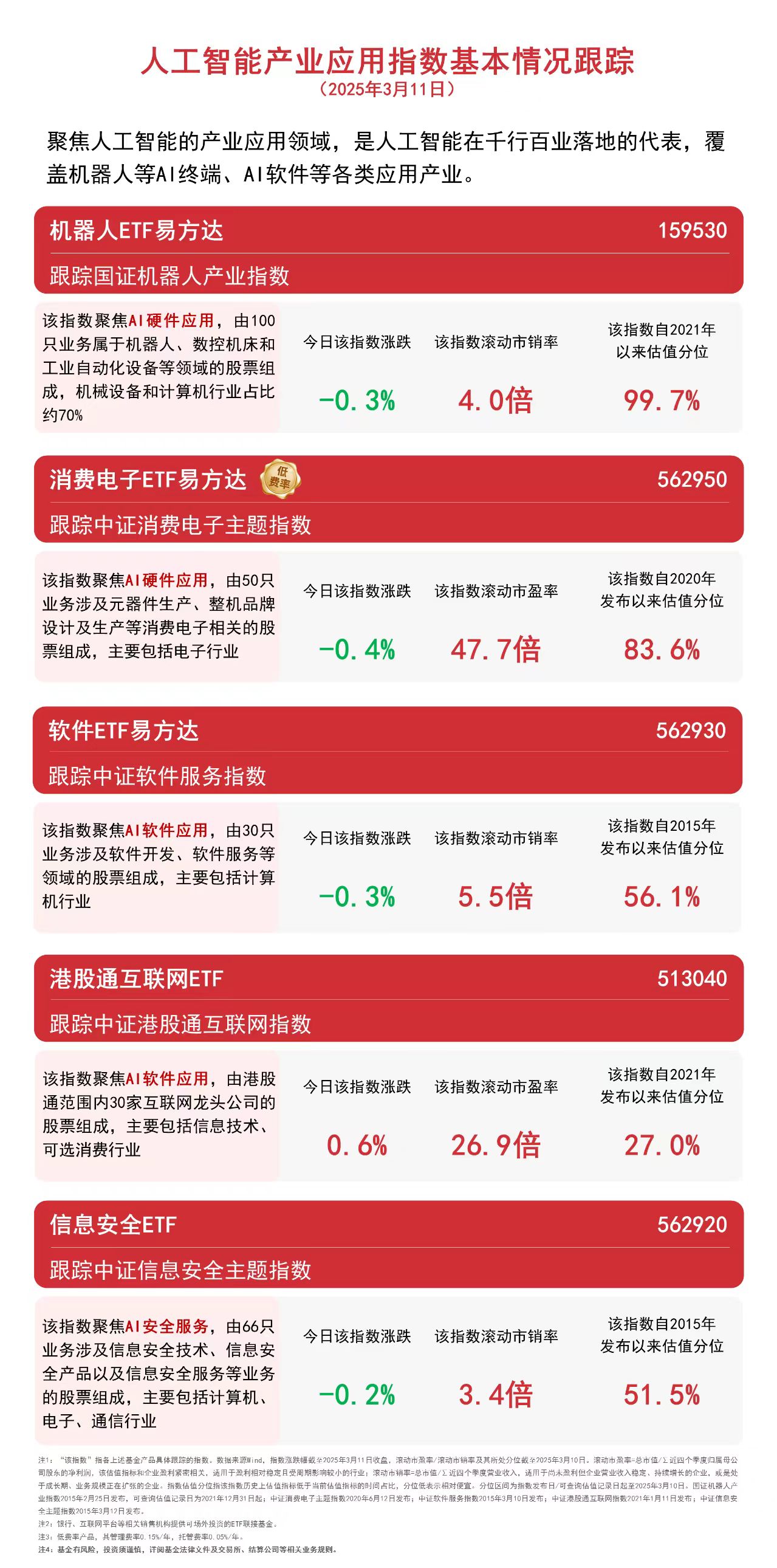 截至收盘,中证港股通互联网指数上涨0.6%,中证信息安全主题指数下跌0.2%,国证机器人产业指数、中证软件服务指数均下跌0.3%,中证消费电子主题指数下跌0.4%。