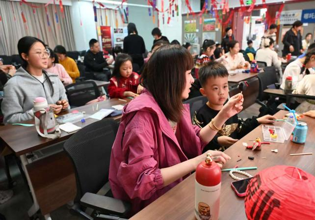 国元证券投教基地内,精心布置了小朋友制作哪吒泥塑的区域。在专业手工老师的指导下,小朋友们兴致勃勃地拿起彩泥,揉、捏、搓,充分发挥自己的想象力,努力塑造出心中英勇的哪吒形象。他们一边制作,一边听工作人员讲述哪吒降妖除魔的故事,并巧妙地将金融诈骗比作 “妖魔”,让小朋友们理解守护财产安全的重要性。小朋友们制作完成的哪吒泥塑,不仅成为活动现场一道独特的风景线,还传递着守护金融安全的寓意。