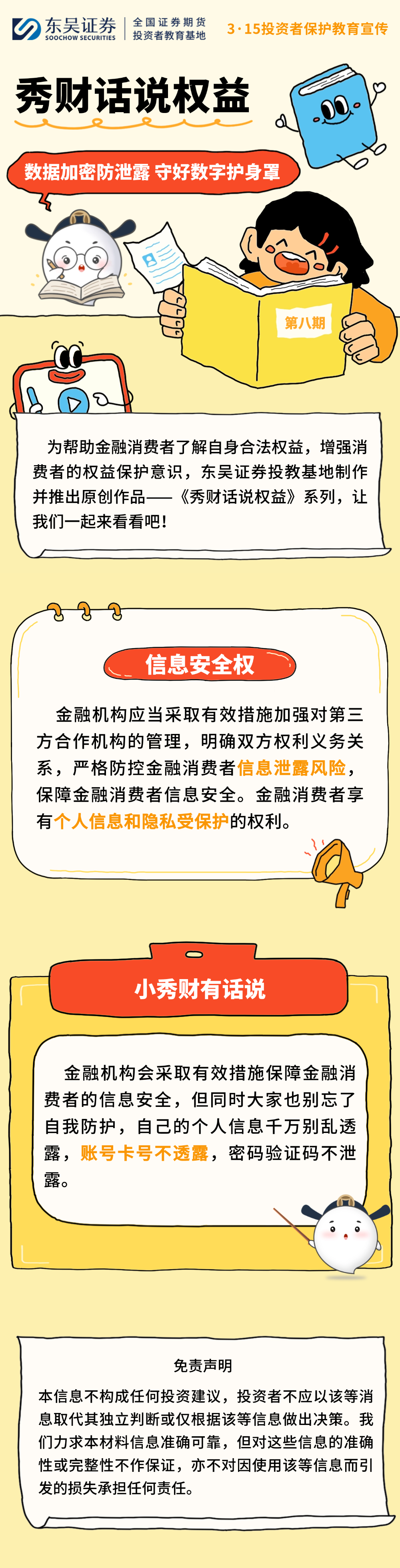 为帮助金融消费者了解自身合法权益,增强消费者的权益保护意识,东吴证券投教基地制作并推出原创作品:秀财话说权益系列,让我们一起来看看吧!