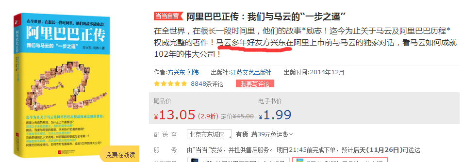 但《阿里巴巴正传》也引发一场风波,风波的另一个主角也是今天的当事方之一:京东