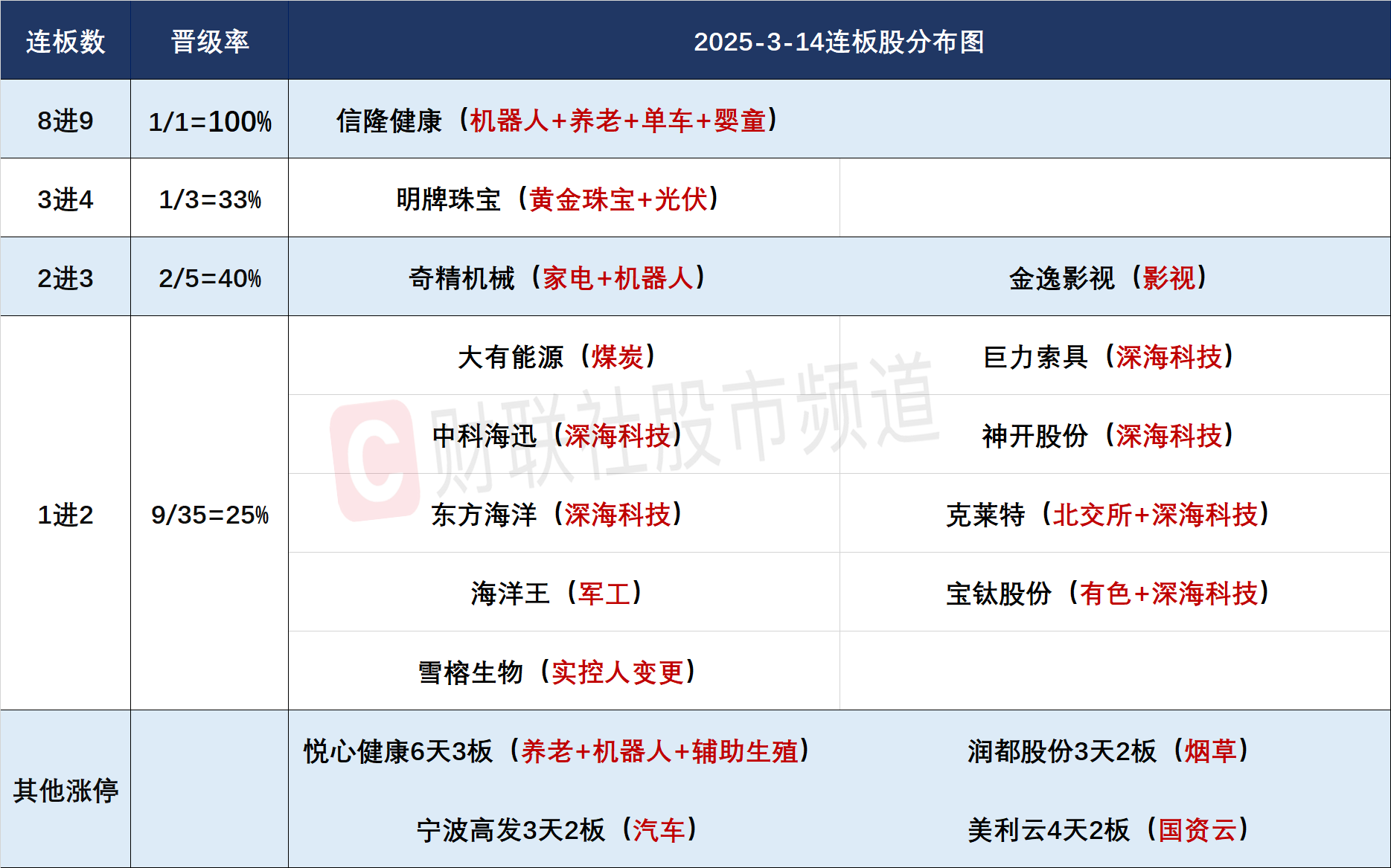 今日共87股涨停,连板股总数13只,其中三连板及以上个股4只,上一交易日共12只连板股,连板股晋级率33.33%(不含ST股、退市股)。个股方面,全市场超4400只个股上涨。虽然信隆健康午后上演“地天板”走出9连板,但高位股整体表现低迷,杭钢股份、狮头股份、嘉环科技等跌停,华丰股份、塞力医疗、湖北广电等跌超8%。板块方面,婴童概念股全线爆发,骑士乳业30CM涨停,孩子王、戴维医疗、康芝药业等20CM涨停,一方面,内蒙古呼和浩特发布育儿补贴细则,生育一孩补贴1万、二孩补贴5万、三孩补贴10万,另一方面,国新办将于17日举行新闻发布会,介绍提振消费有关情况;深海科技概念继续发酵,东方海洋、巨力索具、神开股份等6股连板晋级,东吴证券研报表示,未来深海科技行业有望迎来新的发展机遇,成为我国经济的新增长极。