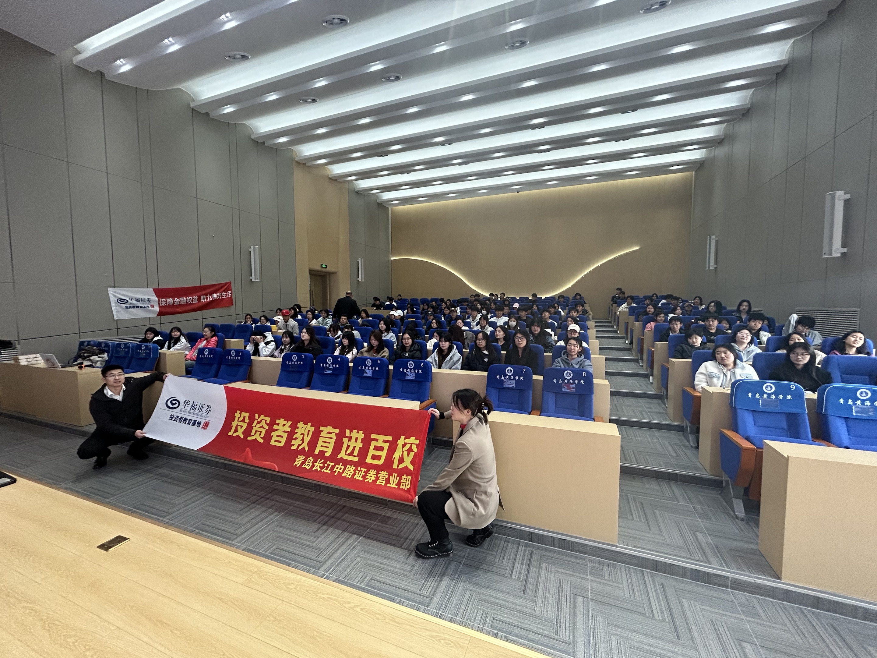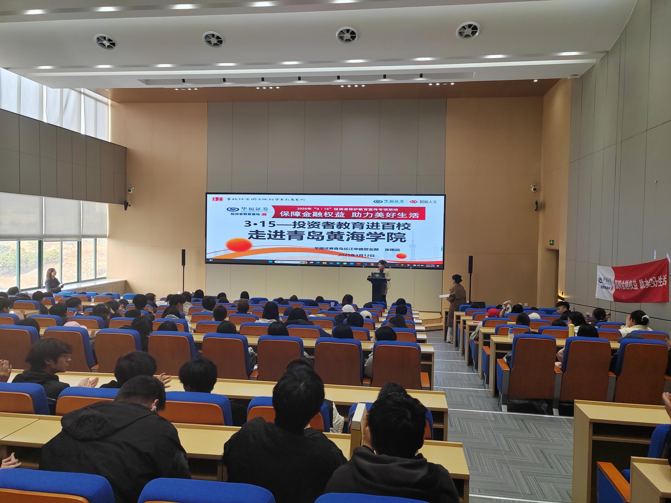 为进一步加强投资者教育,提升大学生的金融素养和风险防范意识,2025年3月12日,华福证券青岛长江中路证券营业部走进青岛黄海学院,成功举办了一场以“保障金融权益,助力美好生活”为主题的2025年“3·15”投资者保护教育宣传专项活动,有100余名学生参与了此次投资者教育活动。