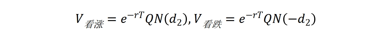 直接从风险中性定价的角度来理解这个公式,很容易发现支付的期望就是价格落在执行价某一边的概率乘上固定支付Q,如下图所示。